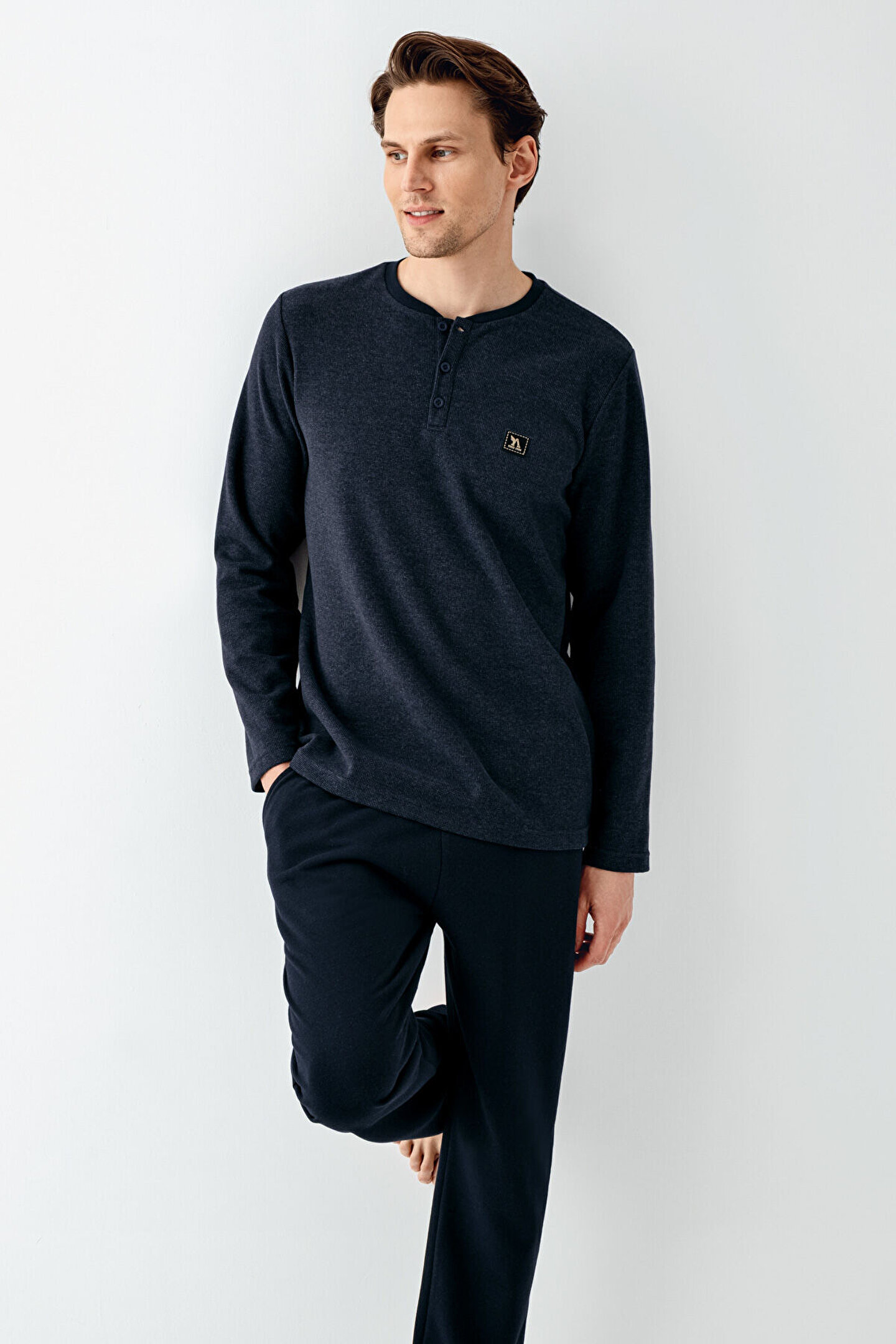 - Lacivert rengiyle şıklığı ve konforu bir arada sunan erkek pijama takımı, günlük kullanım için idealdir.; - Normal boy kesimi ile rahat hareket etme özgürlüğü sağlar; evde geçirilen zamanları daha keyifli hale getirir.; - Regular kalıp sayesinde vücudu saran ancak sıkmayan bir yapıya sahiptir, gün boyu rahatlık sunar.; - Uzun kollu tasarımıyla mevsim geçişlerinde ve serin akşamlarda ekstra koruma sağlar.; - Açık paça tipi modern bir görünüm kazandırırken, bisiklet yakası ise spor ve rahat bir stil oluşturur.; - Baskılı deseniyle göz alıcı detaylara sahip olan bu pijama takımı, ev giyiminize dinamik bir dokunuş ekler.; - Homewear koleksiyonuna ait bu ürün, evdeki konforunuzu artırmak için özel olarak tasarlanmıştır.; - Sürdürülebilirlik detayının bulunmamasına rağmen, %65 polyester ve %35 pamuktan oluşan materyali dayanıklılığı arttırarak uzun süreli kullanım imkanı tanır.; - Maksimum 30°C'de yıkama talimatlarına uygun şekilde bakım yapılması önerilir; böylece ürünün formunu koruyabilirsiniz.; - Kış sezonu için ideal olan bu pijama takımı, soğuk günlerde sıcak tutarken şık görünmenizi de sağlar.; - Pamuklu materyali cildinizle dosttur ve nefes alabilir yapıda olup terlemeyi minimize eder.; - Baskılı tasarım detaylarıyla dikkat çeken bu pijama takımını lounge veya home ortamlarında rahatlıkla tercih edebilirsiniz.; - Menşei Türkiye olan bu ürünümüz yerel üretim avantajlarından faydalanmanızı sağlar.; - Örme kumaşı yumuşak dokusuyla teninize nazikçe dokunurken uzun paça boyu ayak bileklerinizi korur.; - Cool & comfort persona özelliğiyle hem rahat hem de stil sahibi olmanız için tasarlandı; evdeki her anınızda kendinizi iyi hissetmenizi sağlar.; - Uzun kol tipi sayesinde kollarınız tamamen kapalı kalacak şekilde konforlu bir uyku deneyimi yaşamanız mümkün olur.; - Çocuklar için de uygun beden seçeneği sunan bu pijama takımı, genç kullanıcıların konforunu ön planda tutar.
