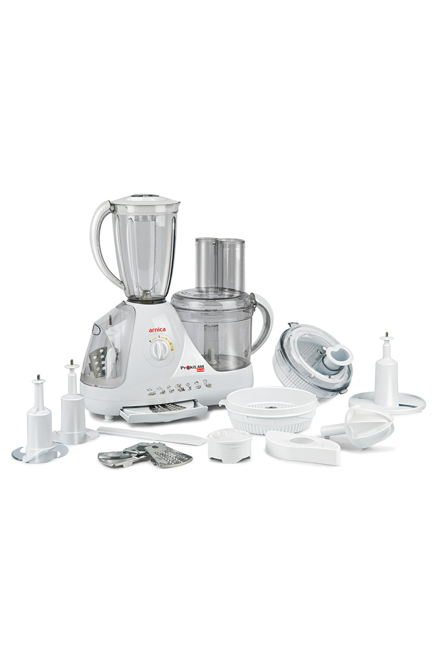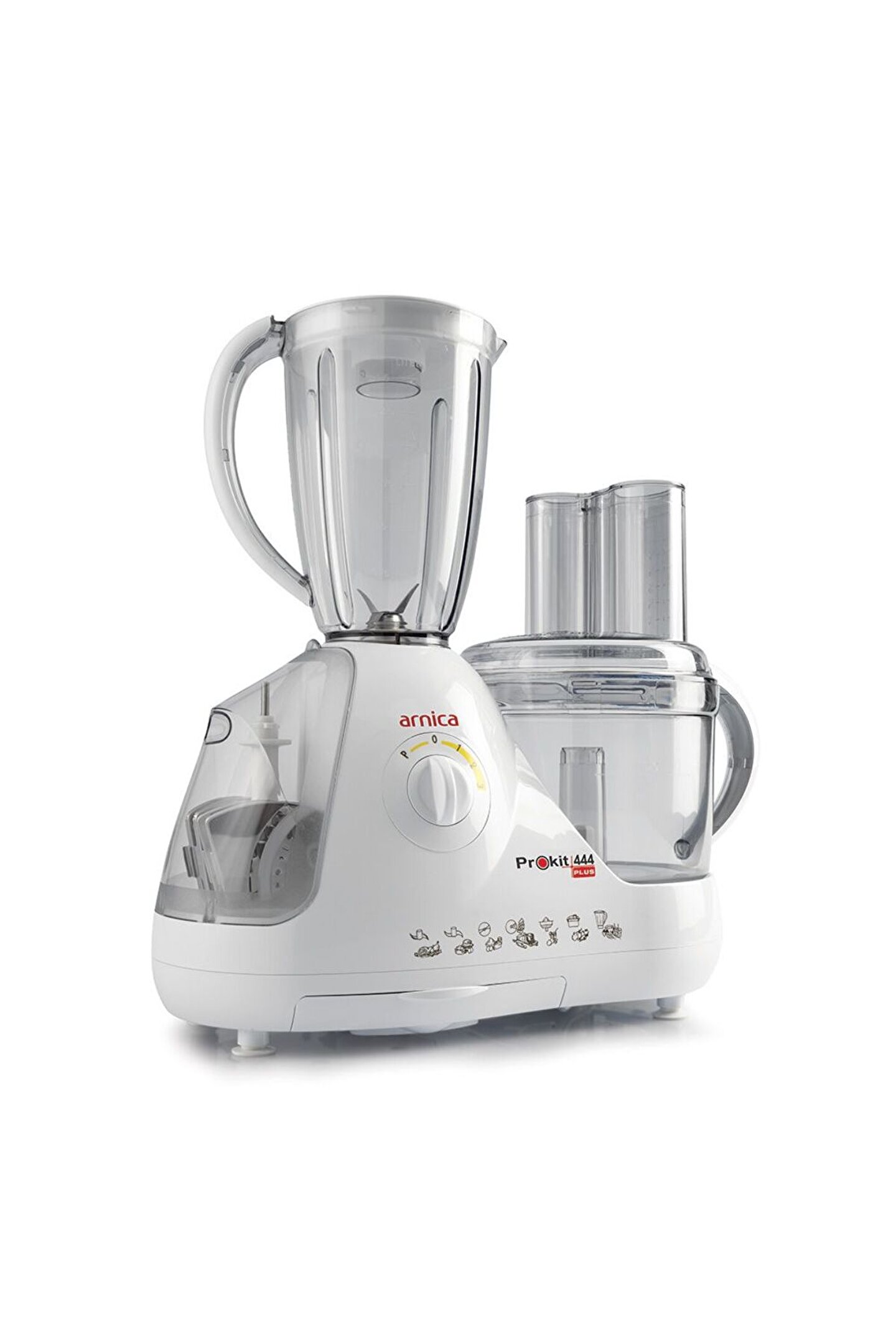 Arnica prokit 444 plus mutfak robotuTeknik özellikler • 800 w motor • 3 farklı hız kademesi • darbeli çalıştırma sistemi • 1.5 lt.; Kapasiteli blender • 1.5 lt.; Kullanışlı hazne • paslanmaz çelik dilimleme bıçağı • rendeleme diskleri • hamur karıştırıcı • otomatik emniyet sistemi • katı meyve sıkacağı • narenciye sıkacağı • krema aparatı.; 3 yıl garantilidir.; ;