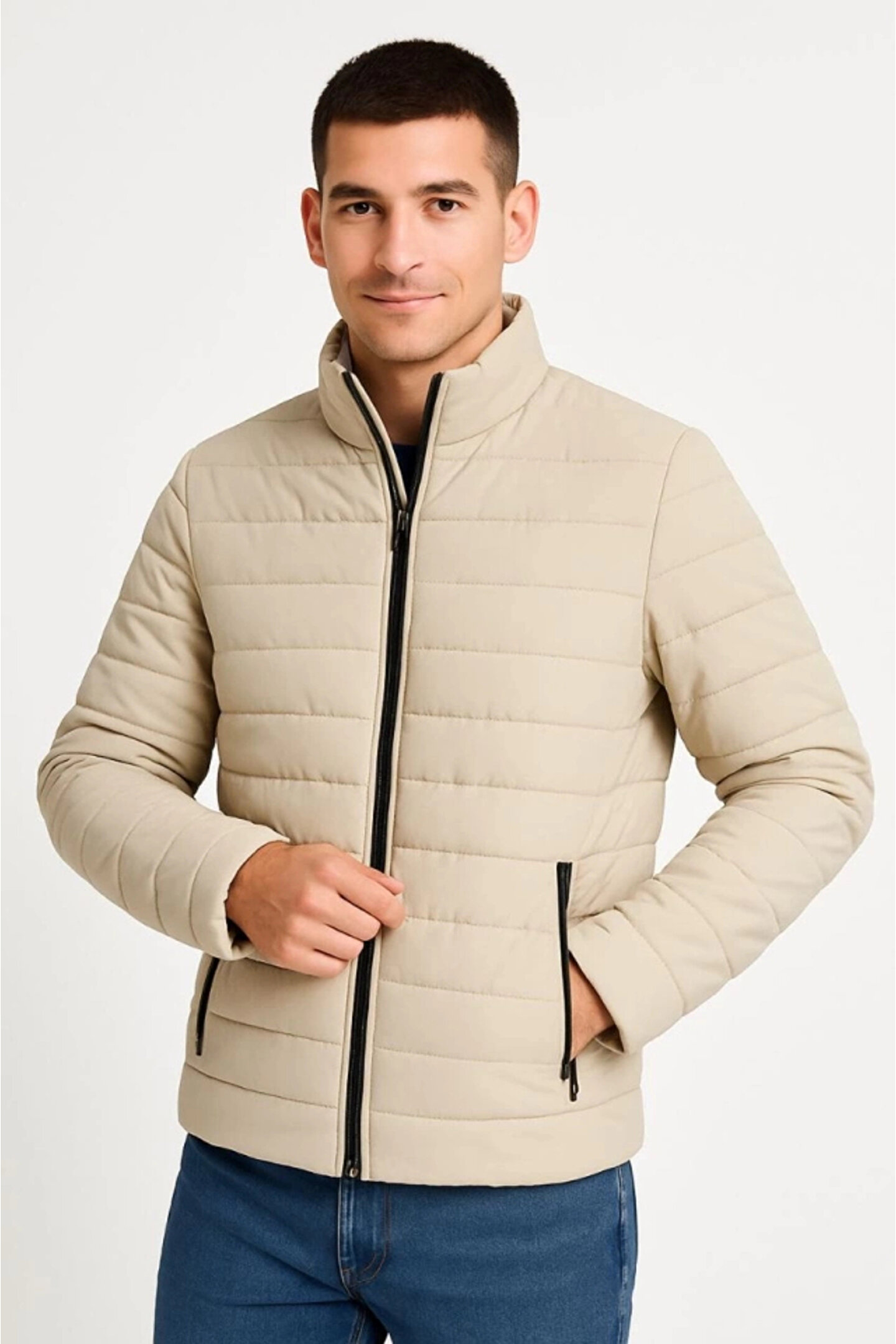 Erkek Bomber Mont Ceket – Su İtici Kumaş, Kapitone Astarlı, Fermuarlı, Kışlık - Bej