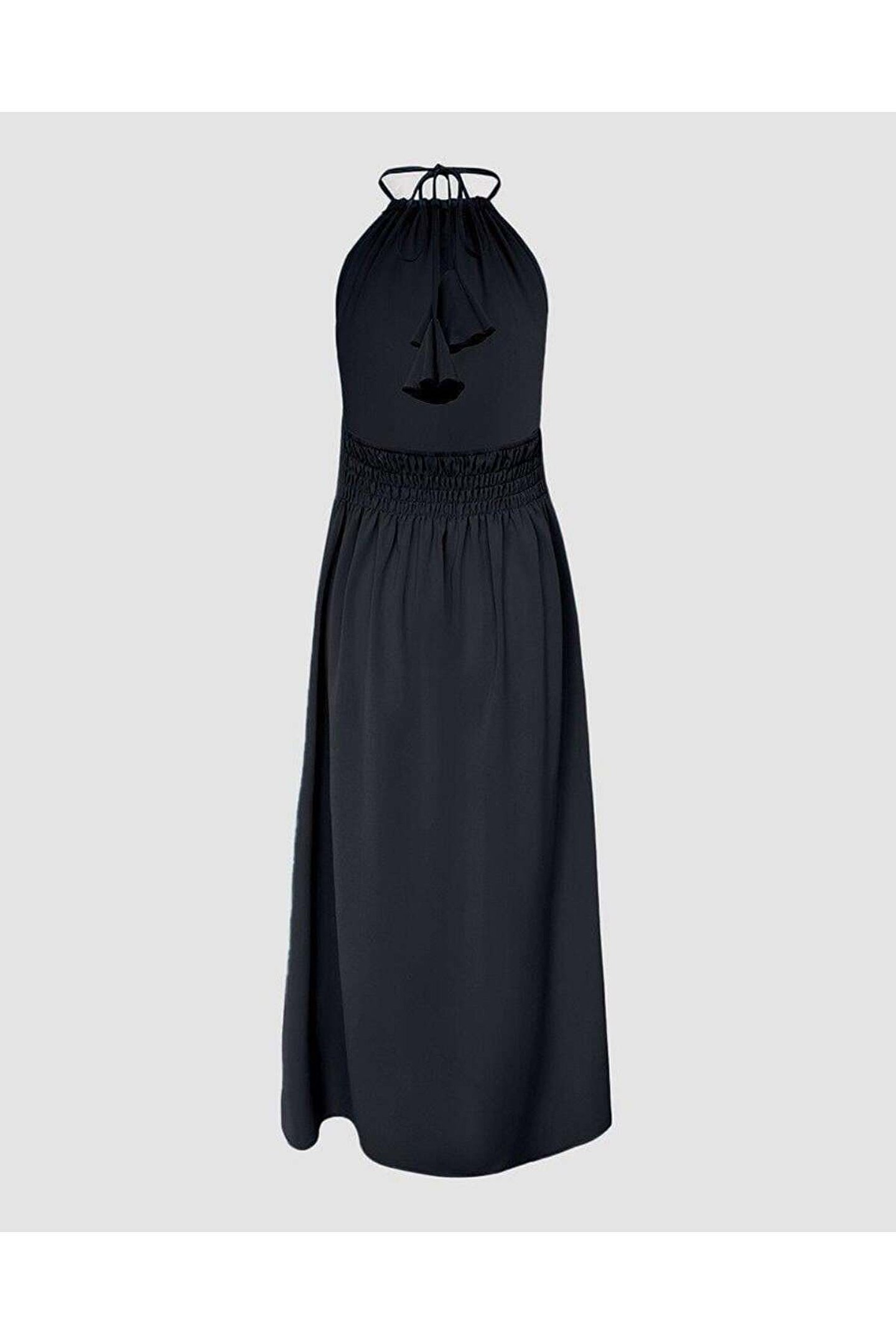 Kadın Boyundan Askılı Halter Kollu Viskon Elbise