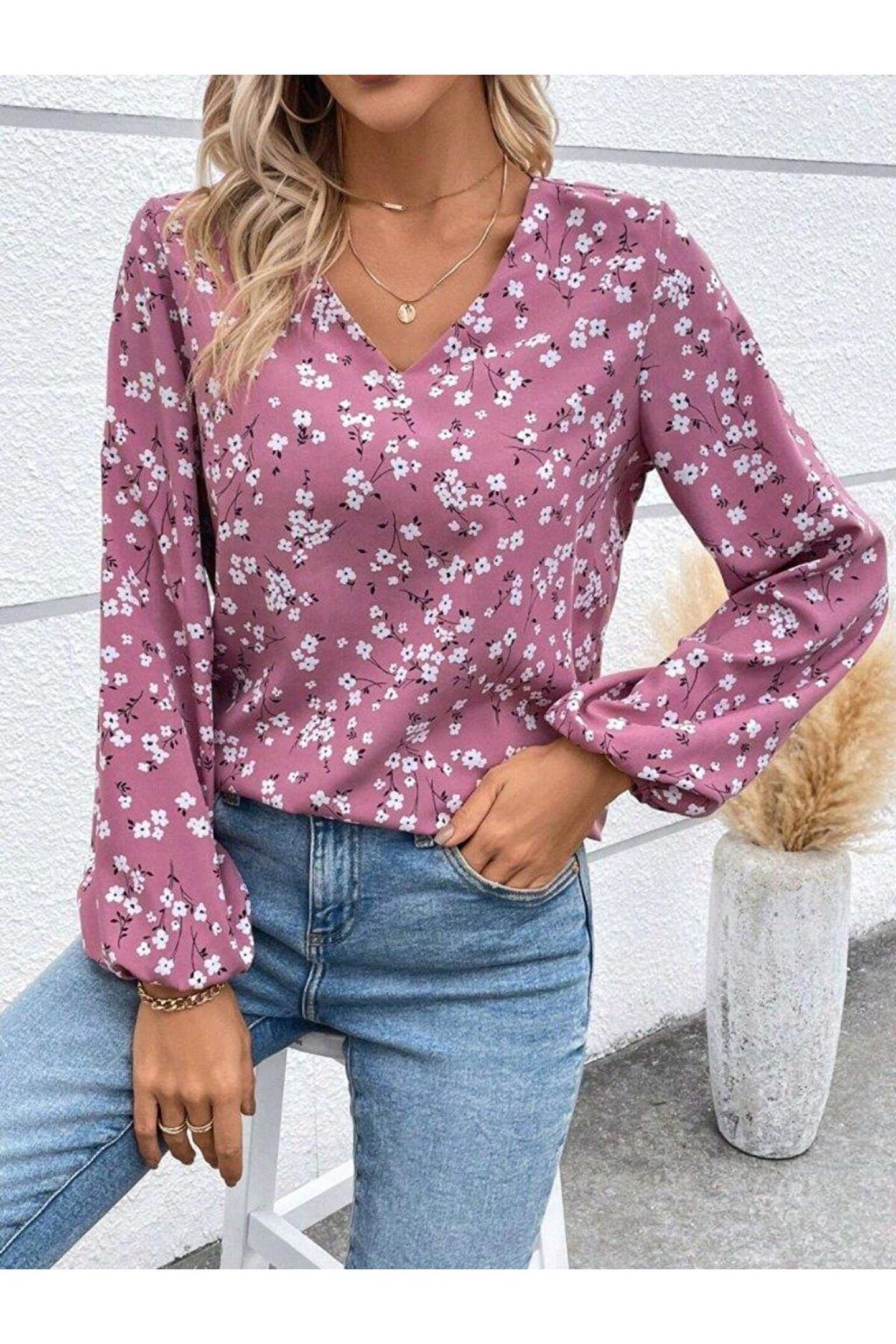Kadın Uzun Kollu V Yakalı çiçek Desenli Modal Bluz