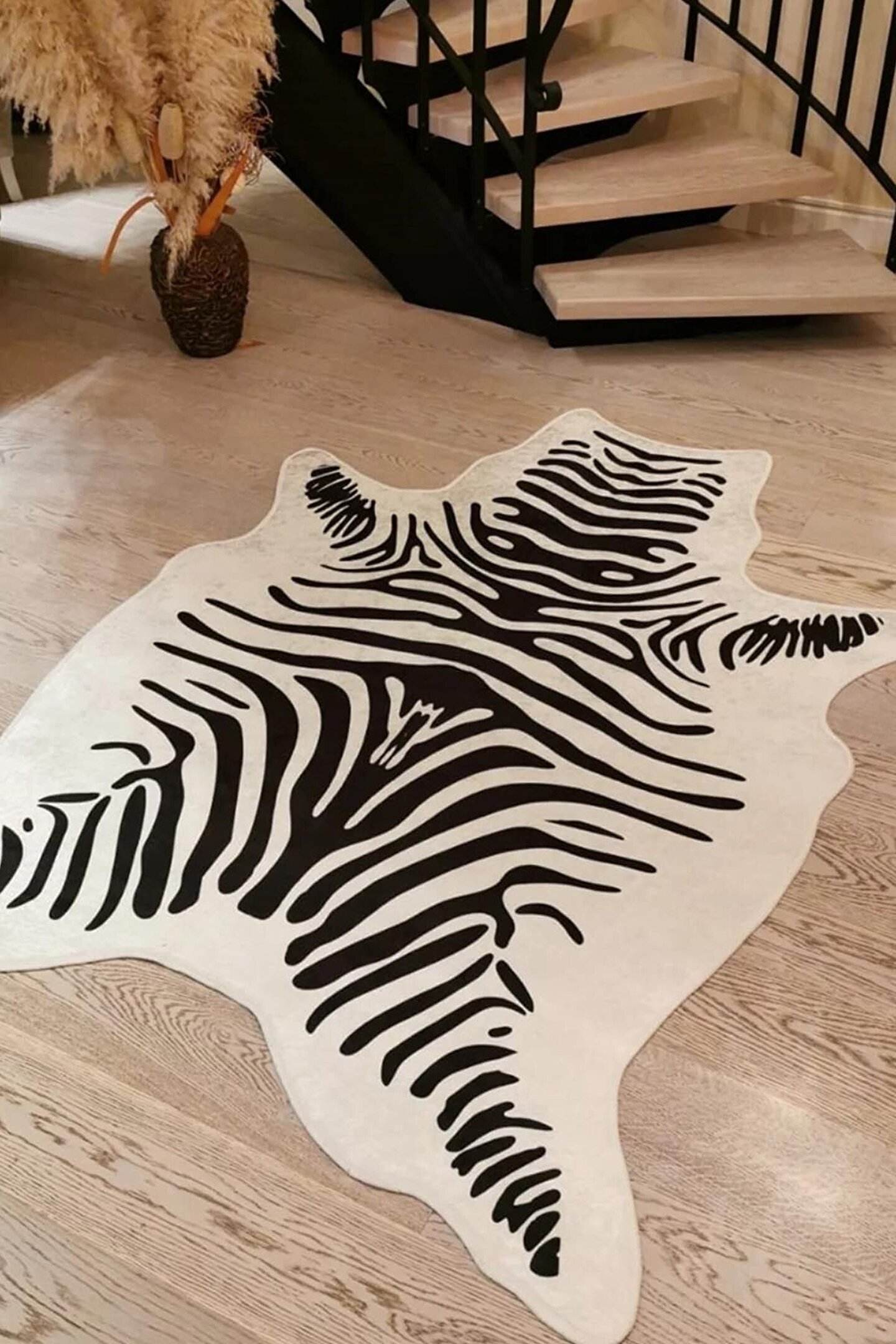 Dijital Baskı Yıkanabilir Kaymaz Taban Beyaz Kahve Tonlu Post Halı Salon Mutfak Halısı