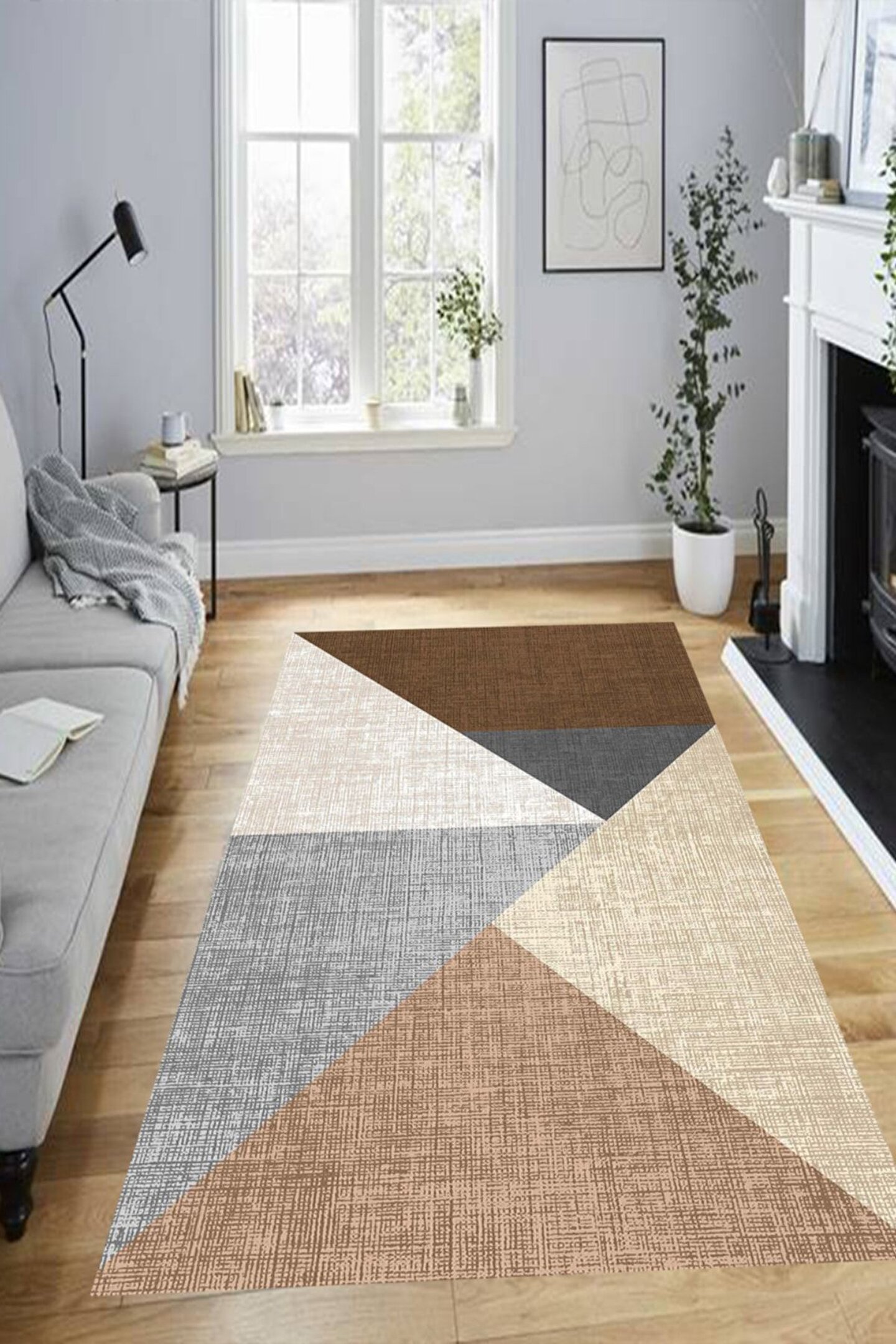 Dijital Baskı Yıkanabilir Kaymaz Taban Kahve Tonlar Kilim Ve Yolluk Halı