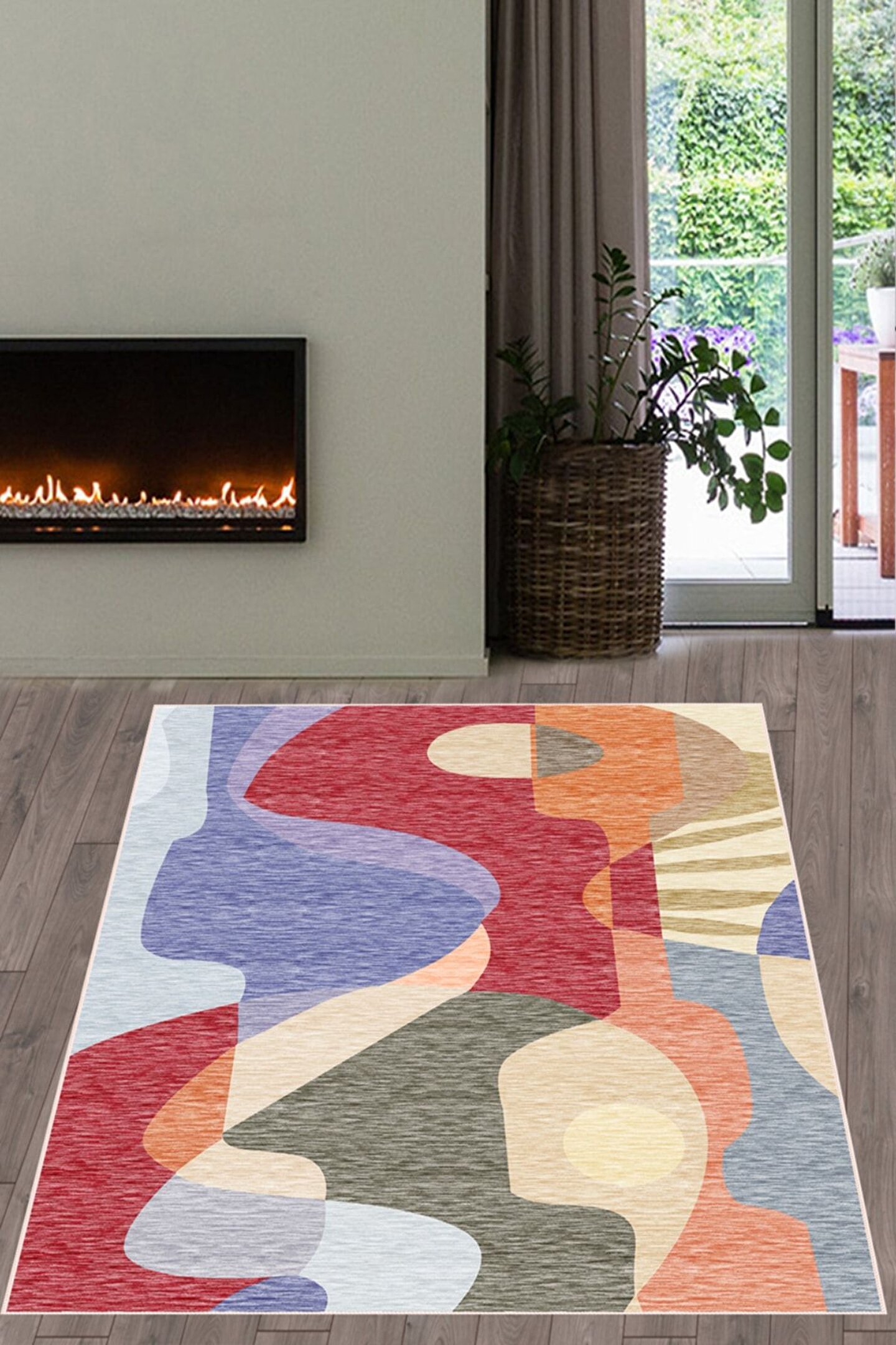 Dijital Baskı Yıkanabilir Kaymaz Taban Renkli Dalgalı Salon Halısı Yolluk Ve Kilim Halı