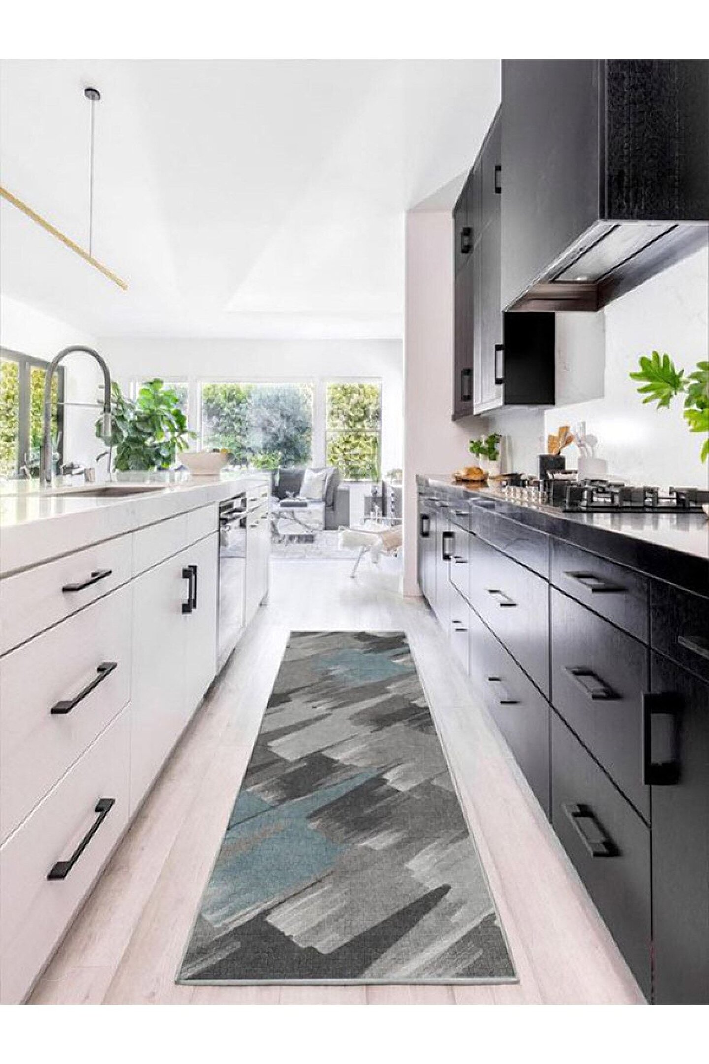 Dijital Baskı Yıkanabilir Kaymaz Taban Siyah& Gri & Beyaz Modern Halı Mutfak Halısı