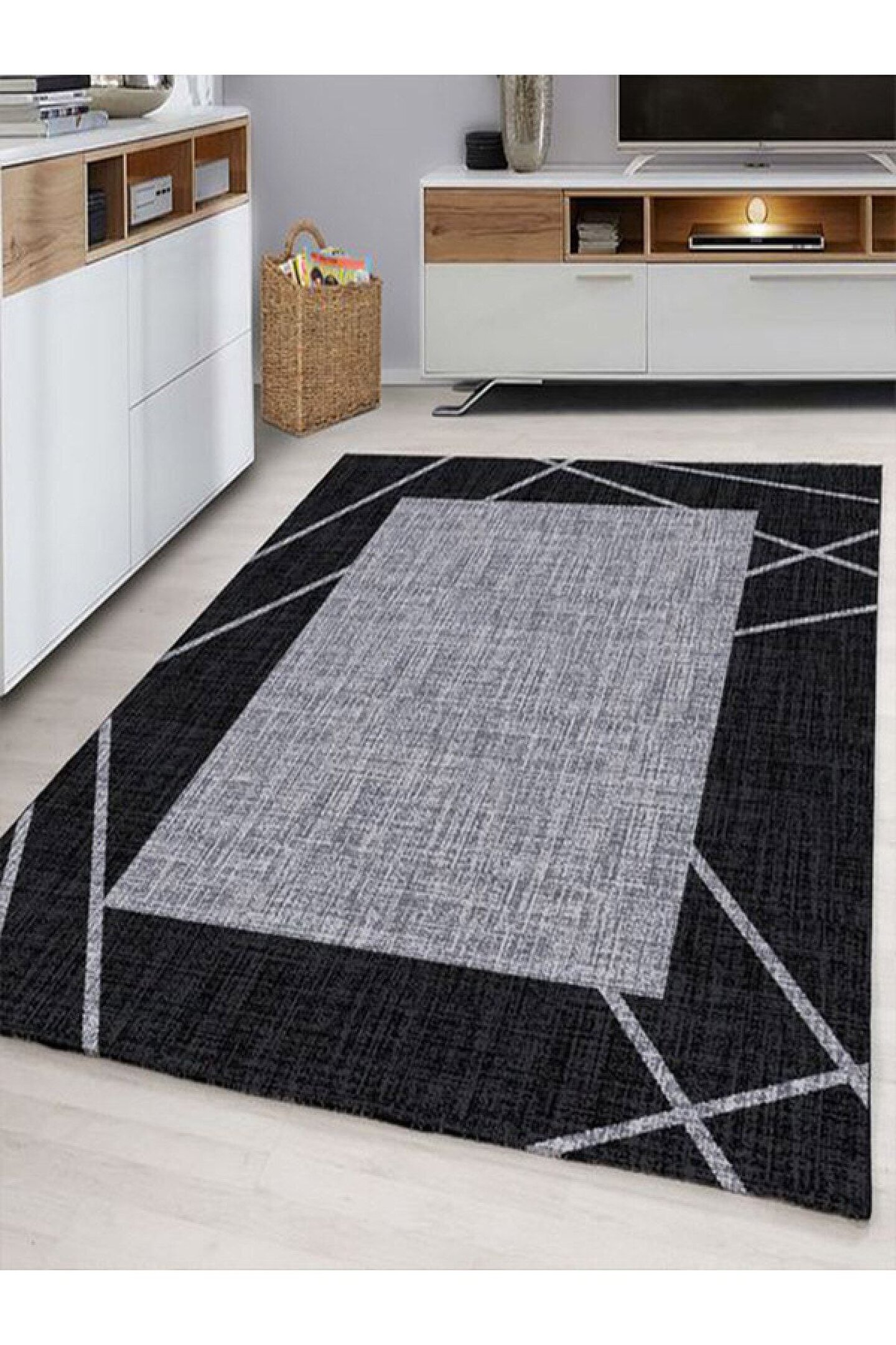 Dijital Baskı Yıkanabilir Kaymaz Taban Siyah Gri Modern Halı Yolluk Salon Halısı