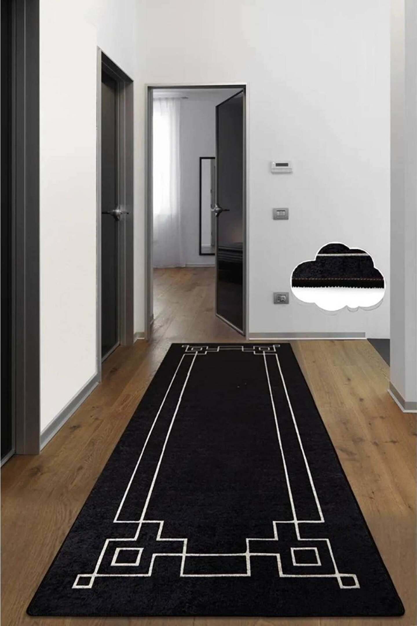 Dijital Baskı Yıkanabilir Kaymaz Taban Siyah Zemin Modern Yolluk Halı
