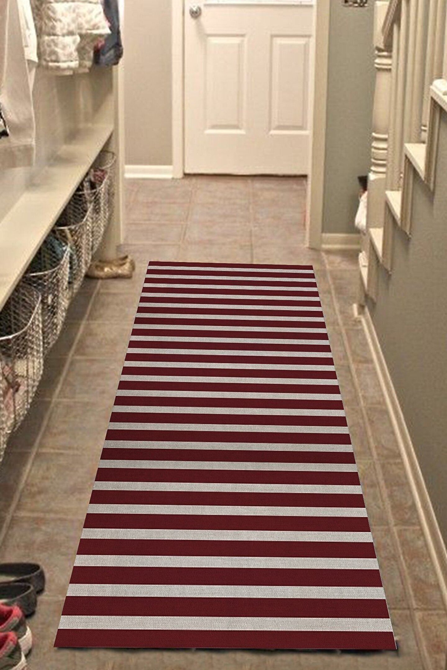 Dijital Baskı Yıkanabilir Kaymaz Taban Yatay Kırmızı Çizgili Yolluk Halı