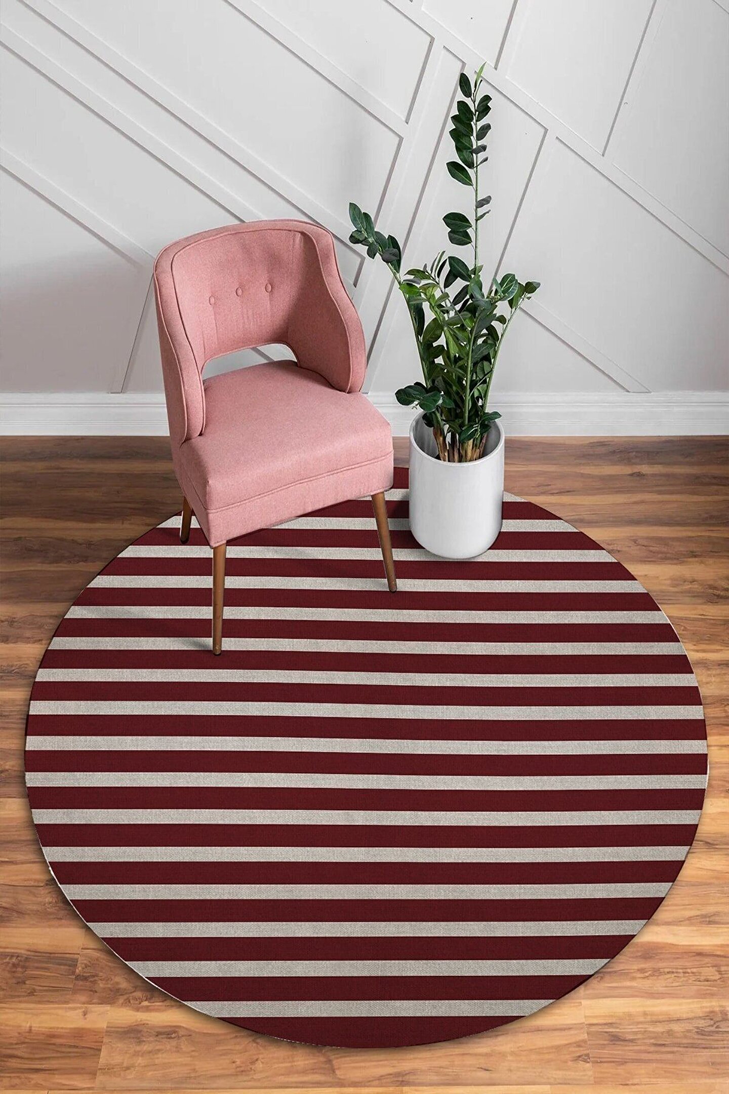 Dijital Baskı Yıkanabilir Kaymaz Taban Yatay Kırmızı Çizgili Yuvarlak Kilim Yolluk Halı