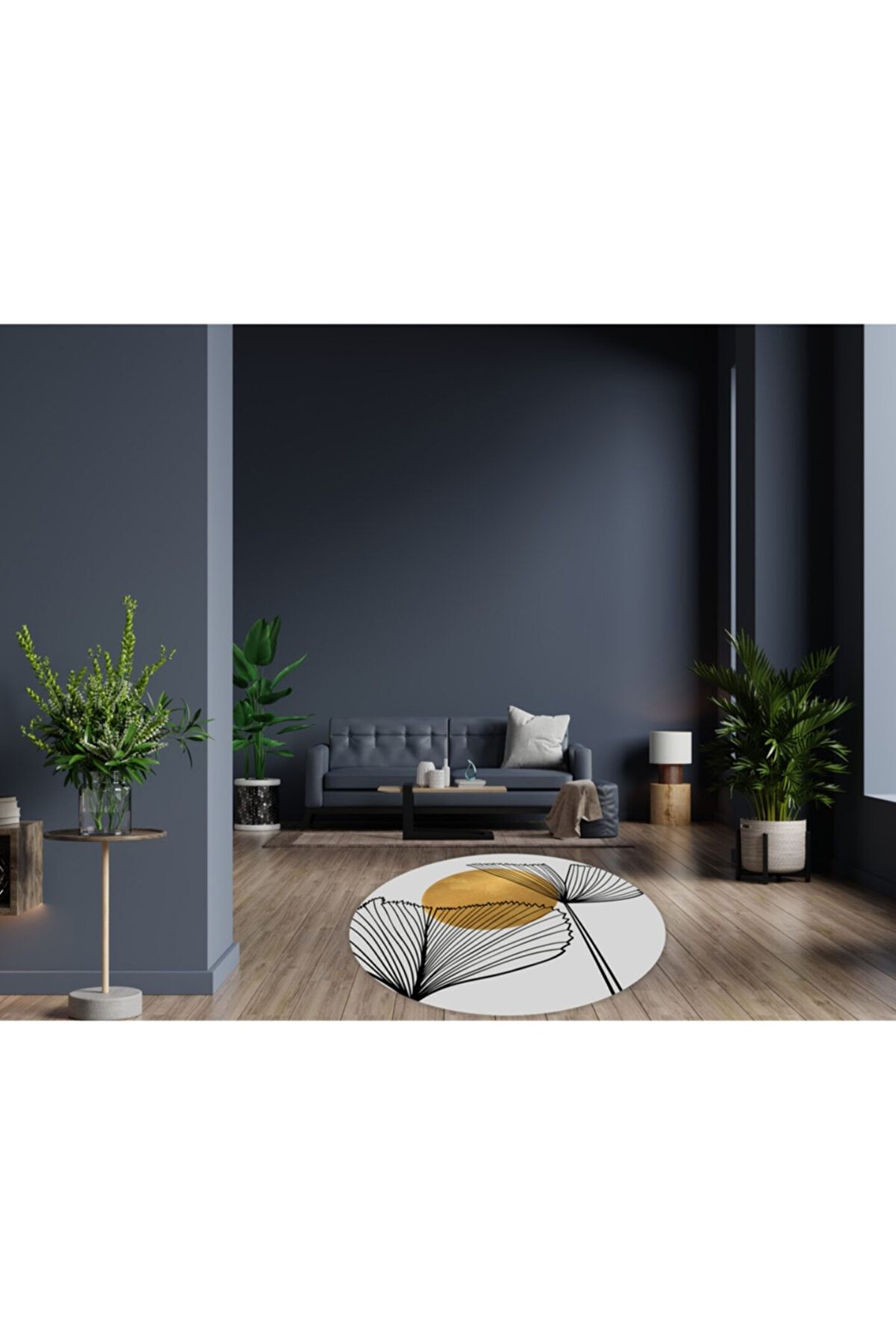 Gold Renkli Çiçek Figürlü Yuvarlak Halı