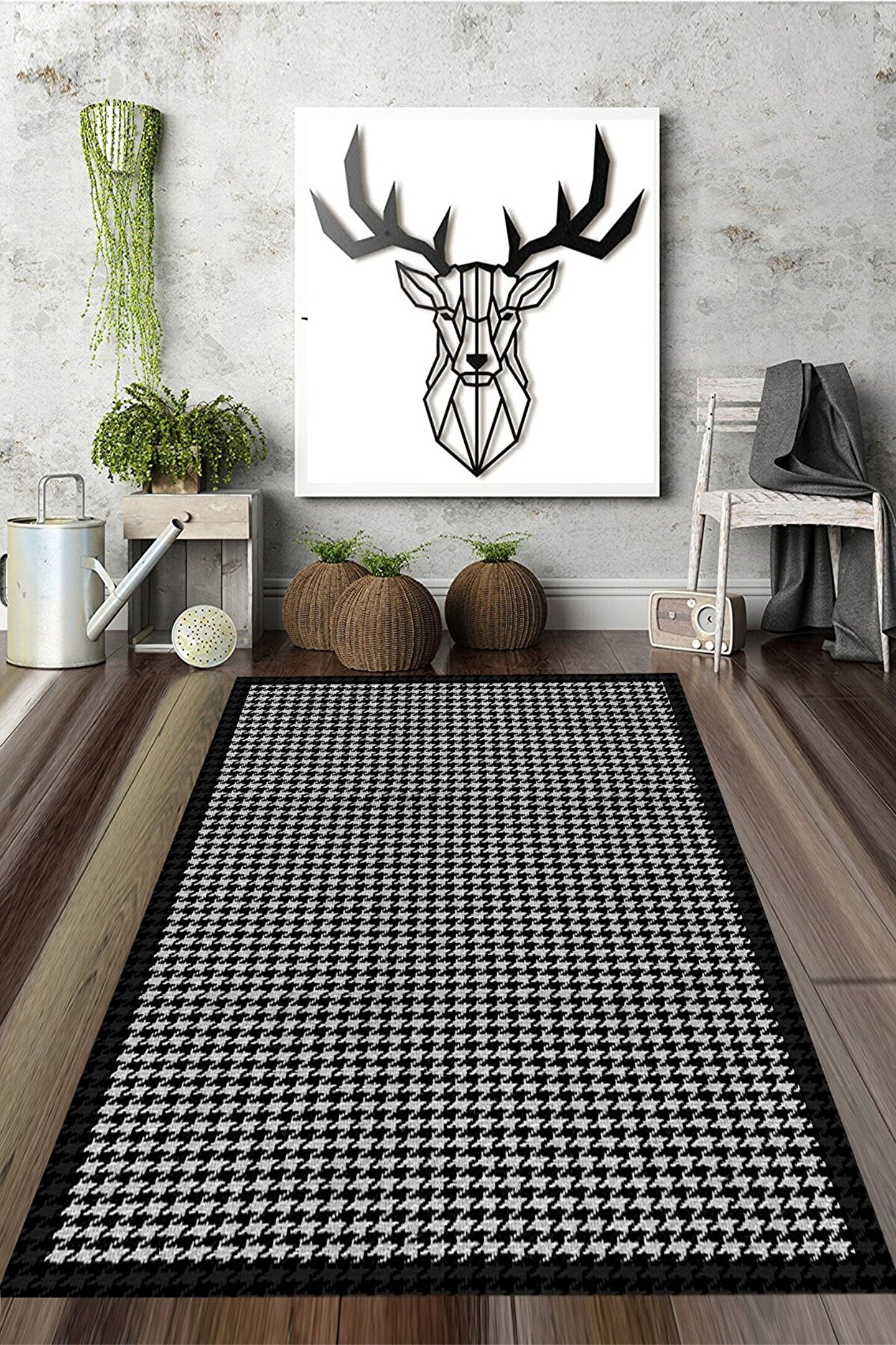 Siyah Çerçeveli Küp Desenli Halı