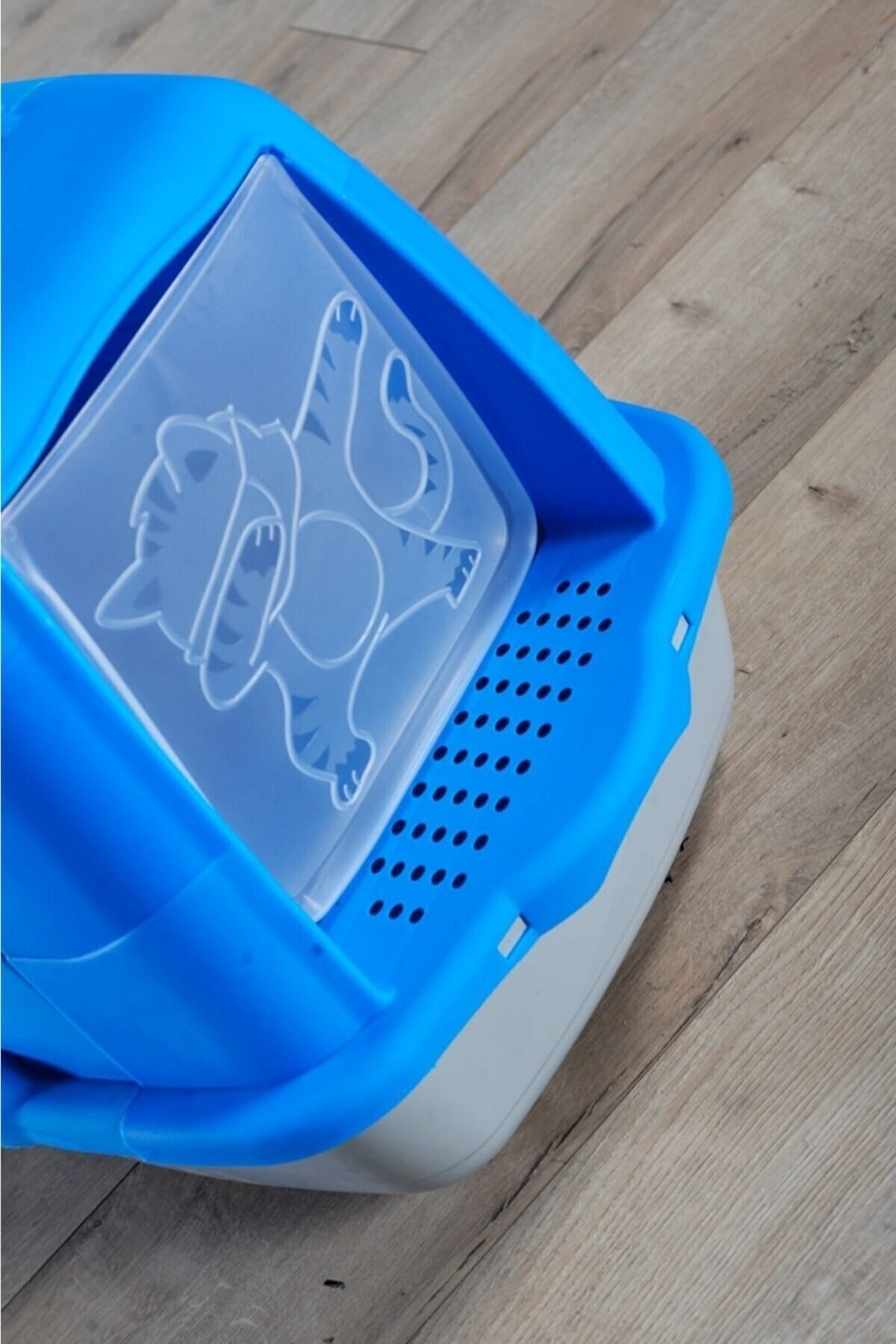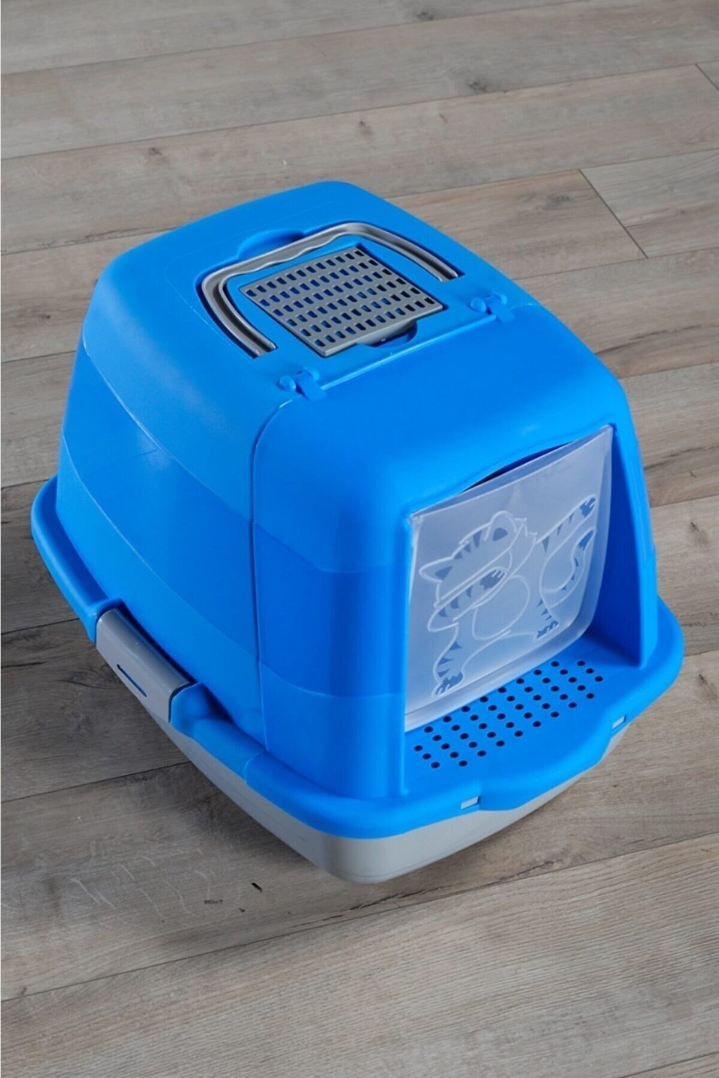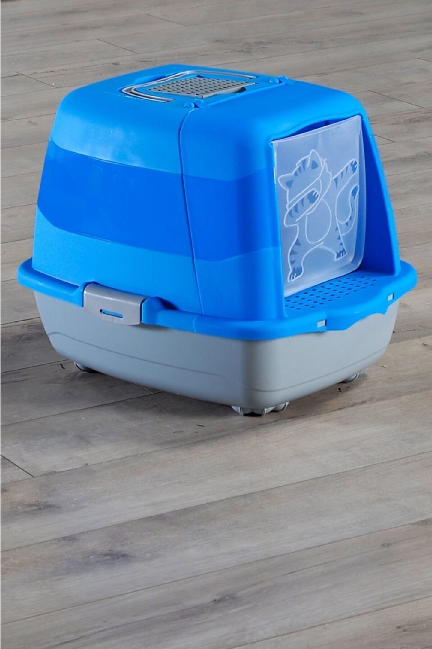 Kapalı tasarımı sayesinde, kedinizin dışkılarını ve idrarını toplayarak evinizin temiz kalmasını sağlar; Kedi figürleriyle süslenmiş mavi renk seçeneği, hem şık hem de eğlenceli bir görünüm sunar; Kolay temizlenebilir yapısı ile pratik kullanım imkanı tanır; böylece hijyenik bir ortamın korunmasına yardımcı olur;