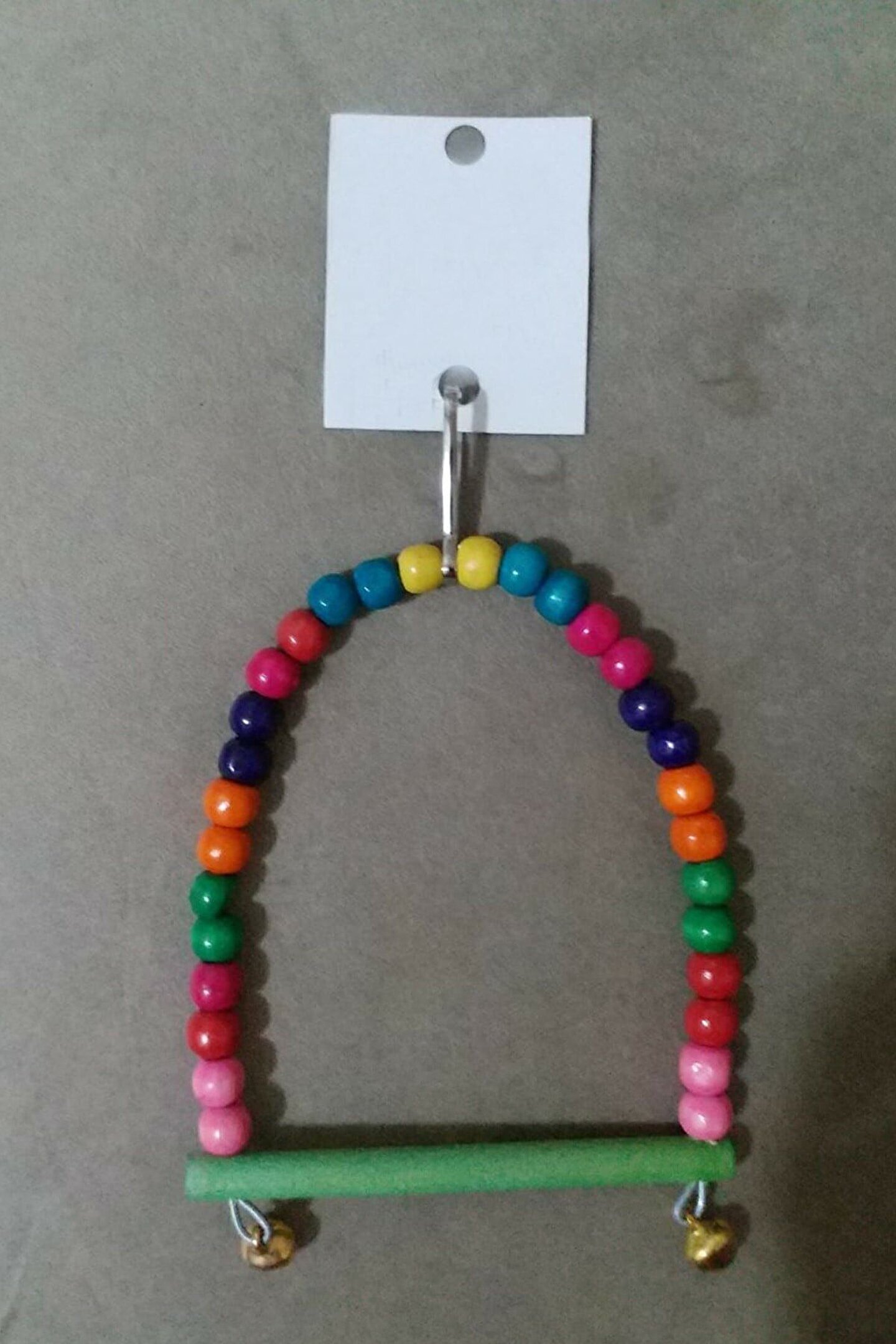 Ahşap tünekli Renkli top boncuklu Ürün tünek uçlarında altın rengi küçük zil bulunmaktadır.