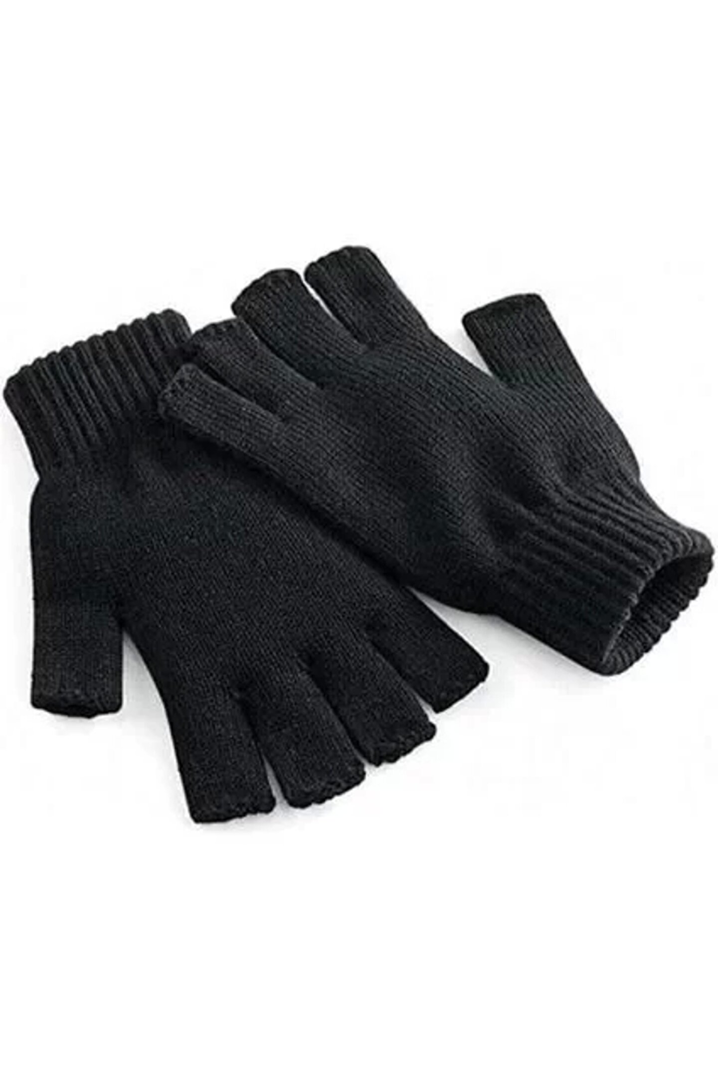 Kadın Kısa Parmaksız Triko Eldiven - Siyah