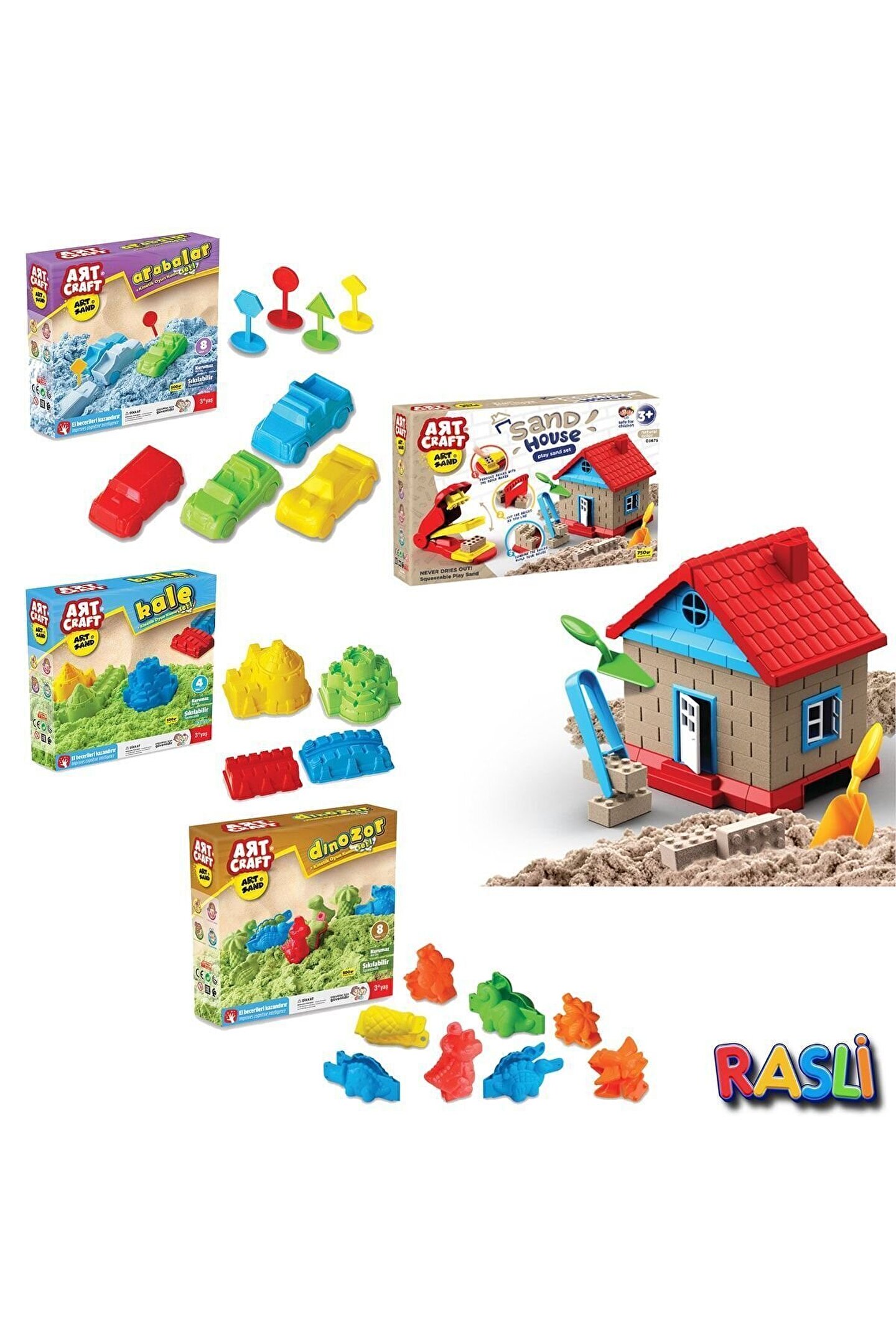 Kinetik Oyun Kumu Seti - Kum Ev, Arabalar, Dinazor, Kale Kum Seti