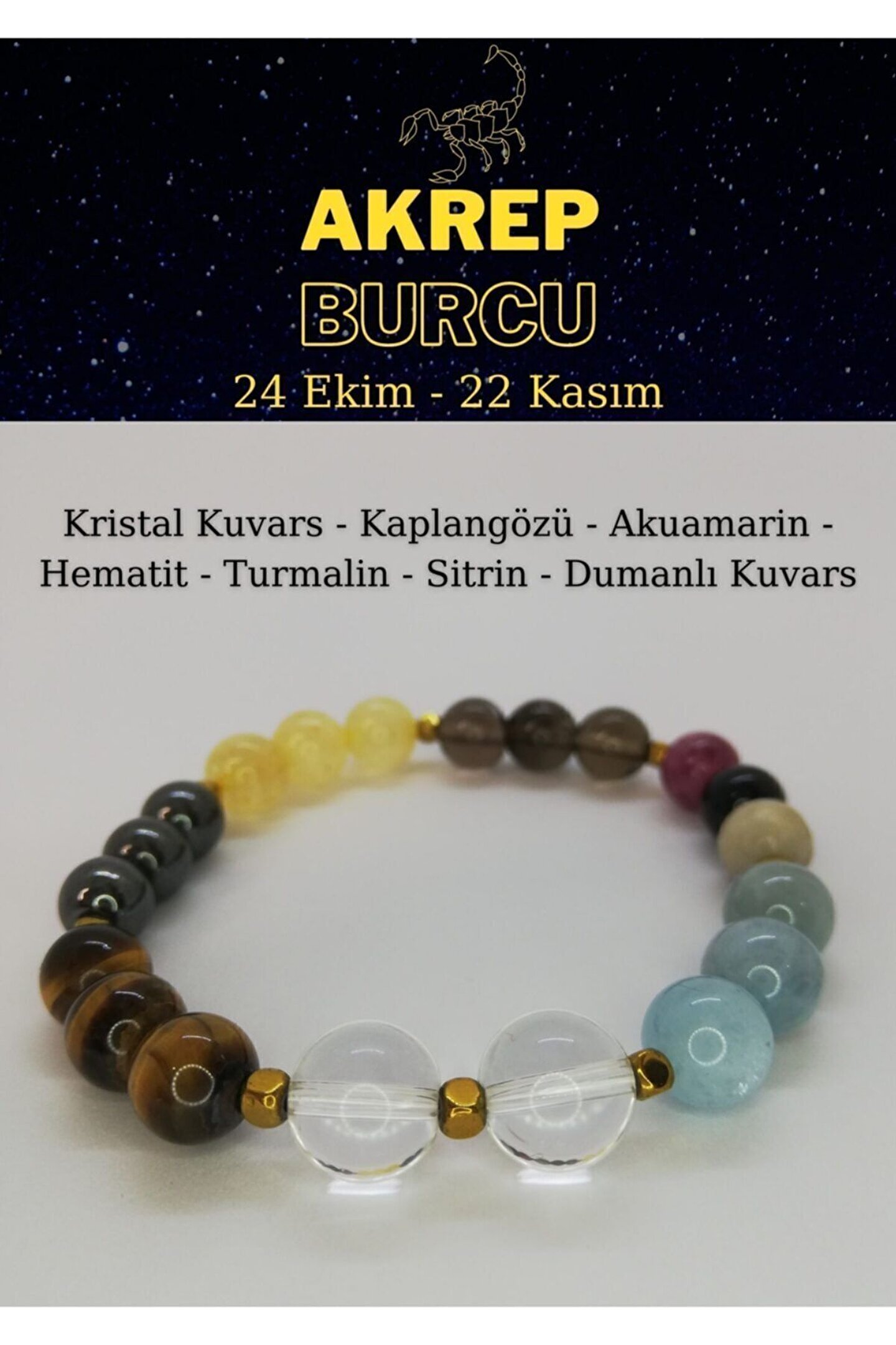 ART LİFE DOĞALTAŞ Natural Ston Akrep Burcu Bilekliği Kaplangözü,kristal Kuvars, Sitrin, Akuamarin, Hematit, Dumanlı Kuvars,turmalin