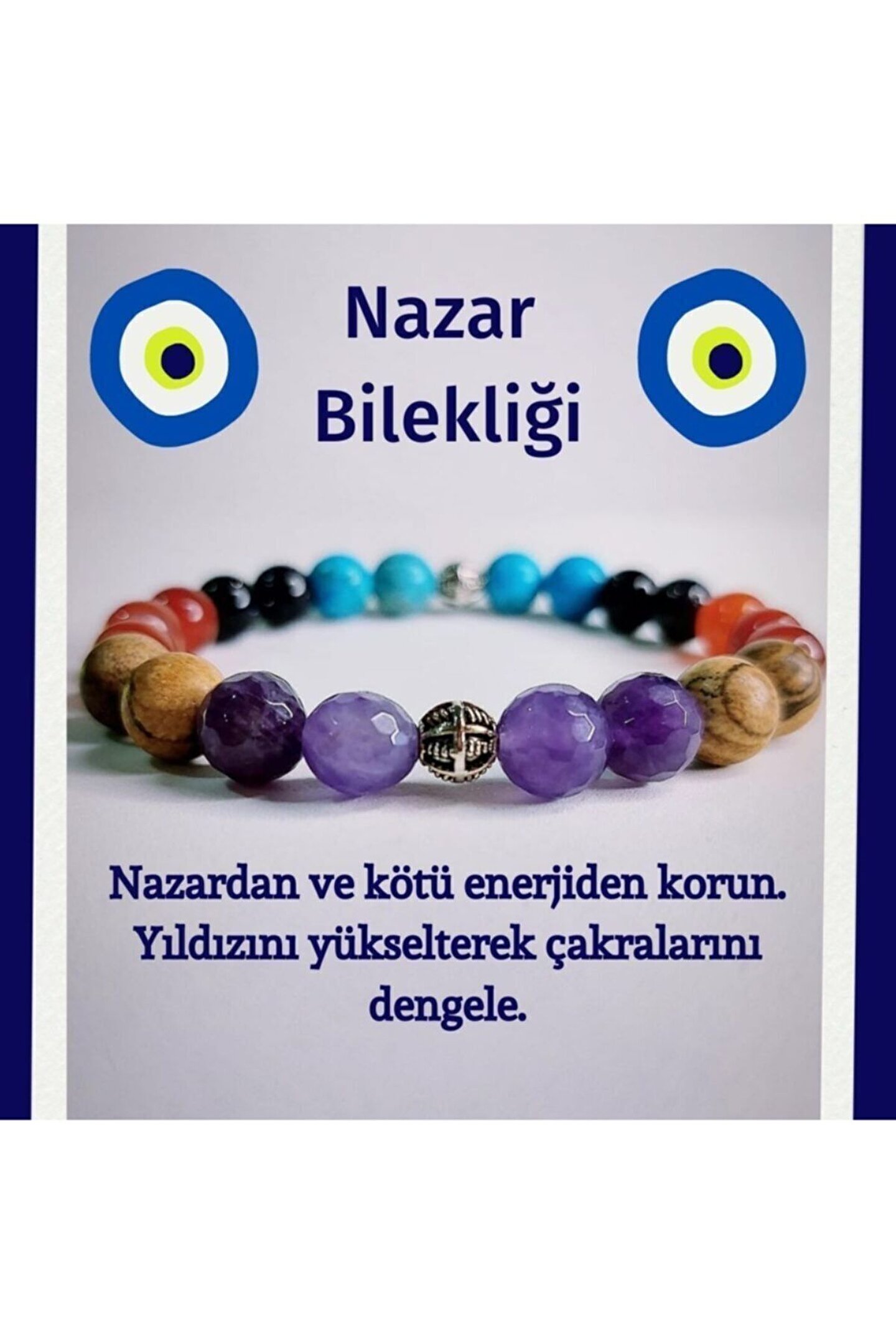 Doğal taş bileklik, şıklığı ve doğallığı bir arada sunar; her tür kıyafetle uyum sağlayacak zarif bir aksesuar; Ametist, jasper, akik ve turkuaz gibi farklı renklerdeki taşlarla zenginleştirilmiş tasarım, göz alıcı bir görünüm kazandırır; Unisex tasarımı sayesinde hem kadınlar hem de erkekler için uygun, herkesin tarzına kolayca uyum sağlar; Doğal taş materyali ile hem dayanıklılık hem de estetik bir dokunuş sunar; uzun süreli kullanım için idealdir;