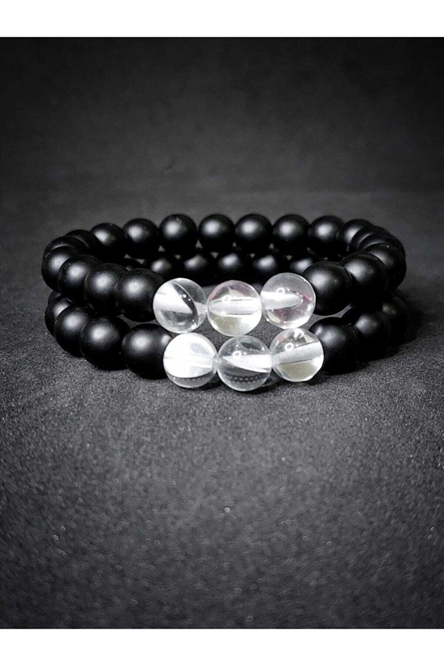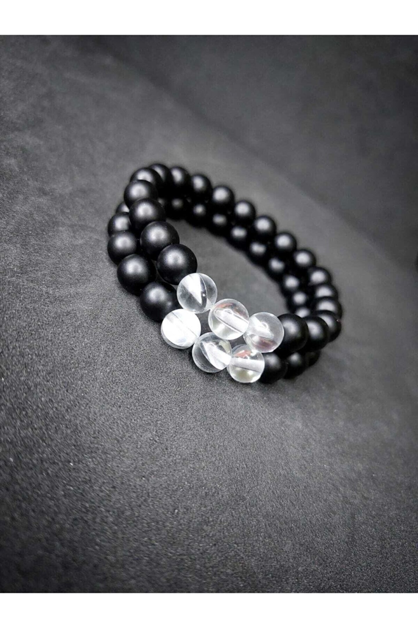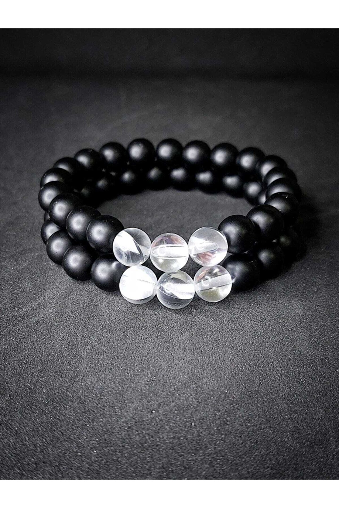 ART LİFE DOĞALTAŞ Natural Ston Oniks & Beyaz Çek Kristali (termal Kuvars) Doğaltaş Sevgili Bilekliği
