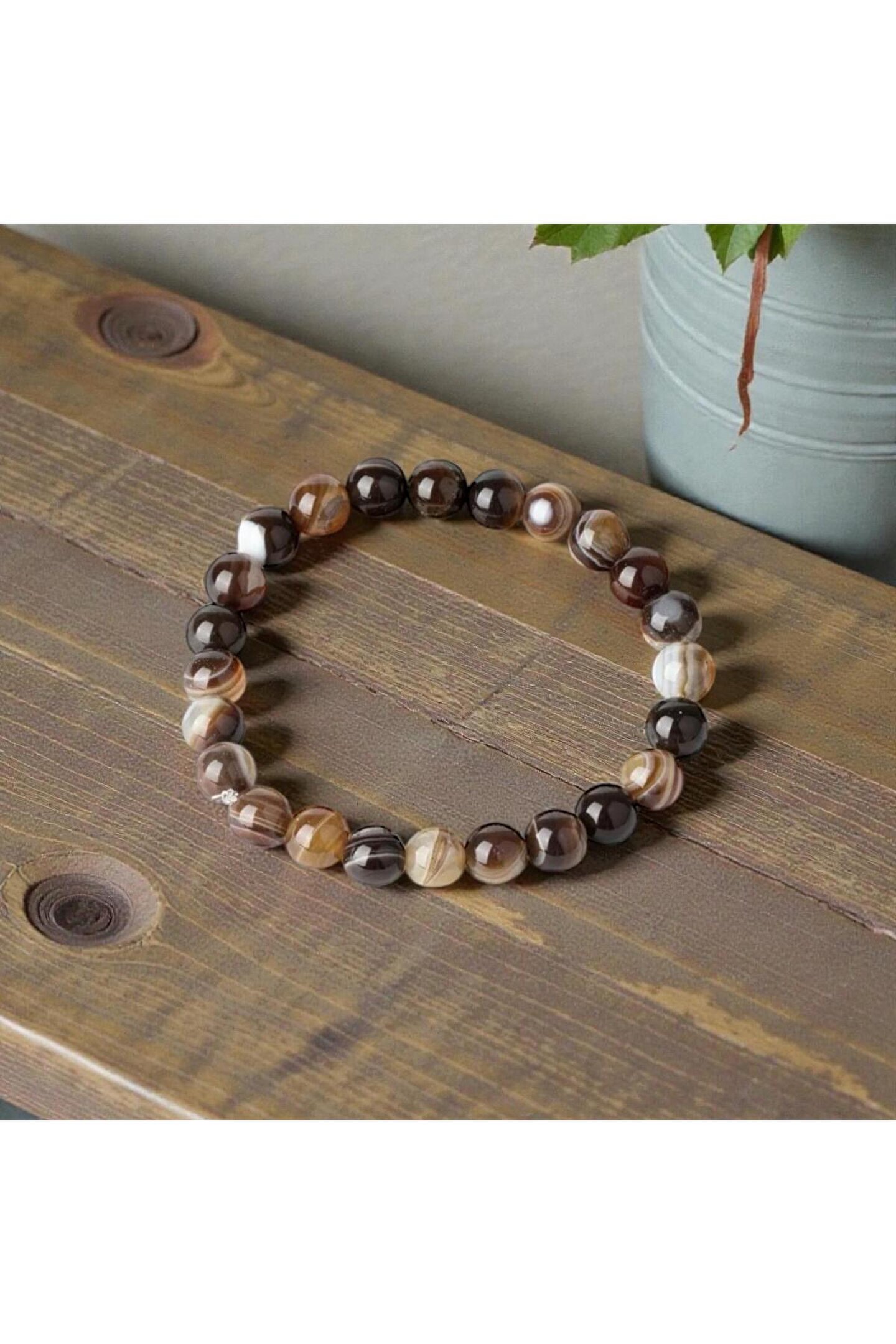 - Doğal akik taşı kullanılarak üretilmiş, her bir bileklik benzersiz bir görünüme sahiptir.; - 8 mm çapındaki taşlar, bileğinizde zarif bir şekilde durur ve şık bir aksesuar olarak öne çıkar.; - Unisex tasarımı sayesinde hem kadınlar hem de erkekler tarafından rahatlıkla kullanılabilir.; - Türkiye'de üretilmiş olup, yerel işçiliğin ve doğal kaynakların kalitesini yansıtır.; - Yetişkinler için ideal bir aksesuar olup, her türlü kıyafetle kolayca kombinlenebilir.;