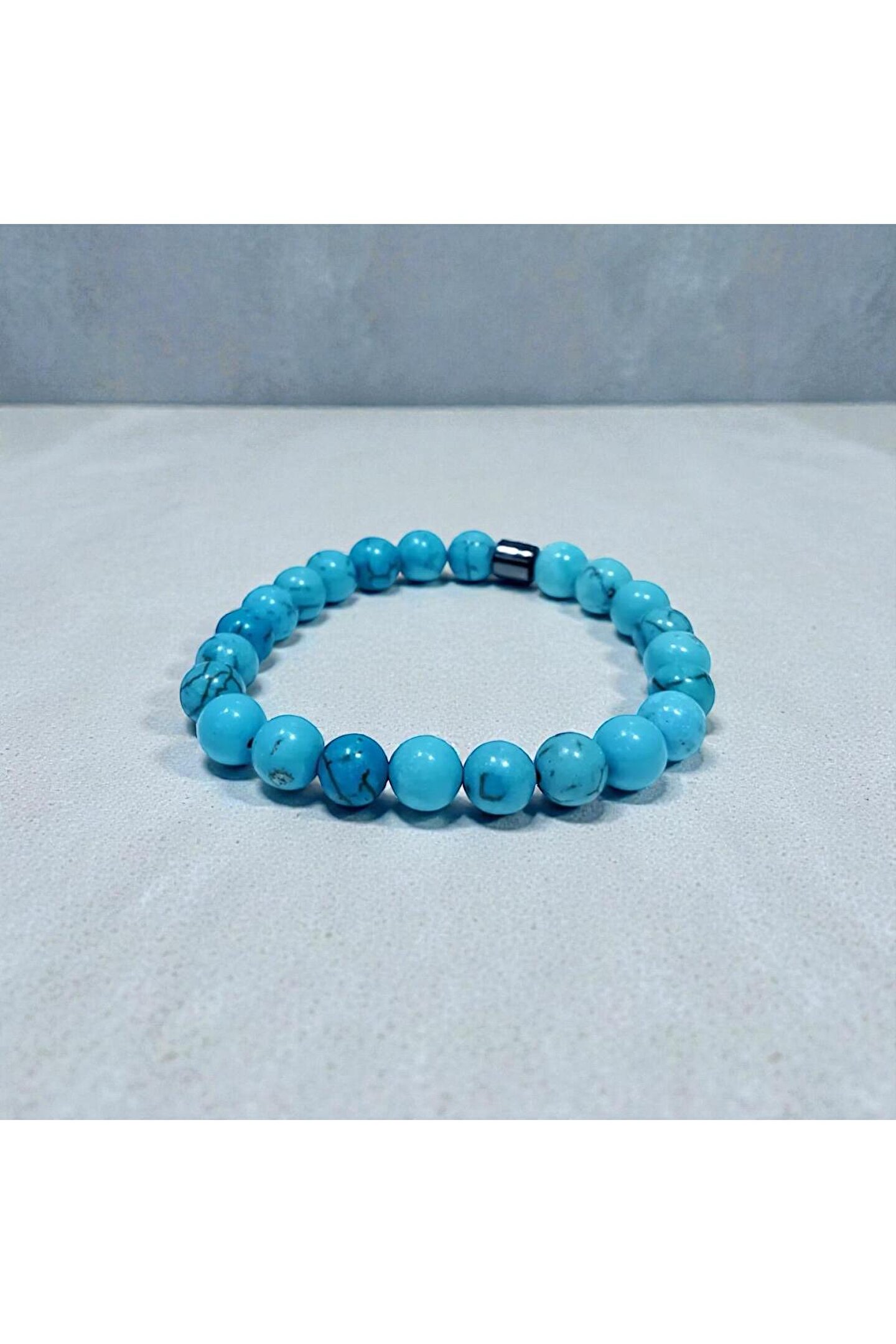 - %100 doğal turkuaz fıruze taşı kullanılarak üretilmiştir, doğanın eşsiz güzelliğini bileğinizde hissedin.; - 8 mm çapındaki boncuklar, hem şık bir görünüm sunar hem de rahat bir kullanım sağlar.; - Unisex tasarımı ile kadın ve erkek herkesin zevkine hitap eder; stilinizi tamamlayacak mükemmel bir aksesuar.; - Türkiye'de üretilmiş olup, yerel işçiliği desteklerken aynı zamanda kalite standartlarına uygunluk gösterir.; - Yetişkinler için idealdir; her yaş grubundaki bireylerin günlük kullanımına uygun olarak tasarlanmıştır.;