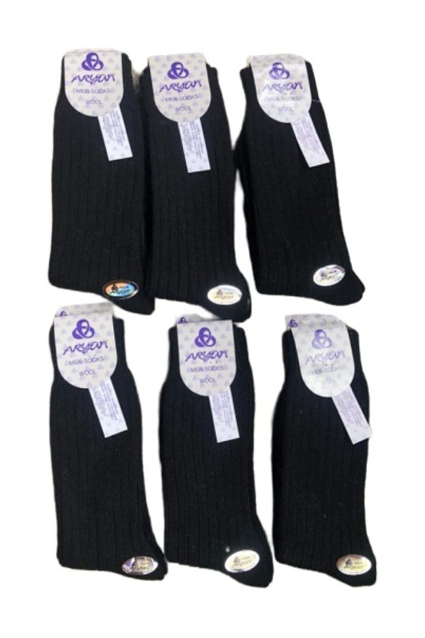Bora Yün Çorap Doğal Yün Dikişsiz Kışlık Yün Çorap Ün 12 Çift 40--44 Siyah