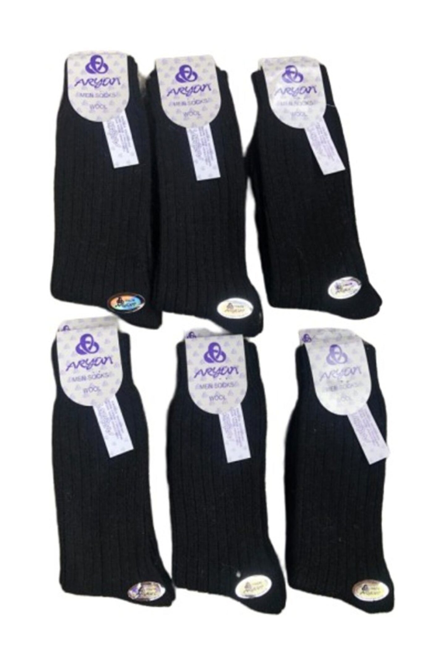 Ary Bora Yün Çorap Doğal Yün Dikişsiz Kışlık Yün Çorap Ün 12 Çift 40--44 Siyah