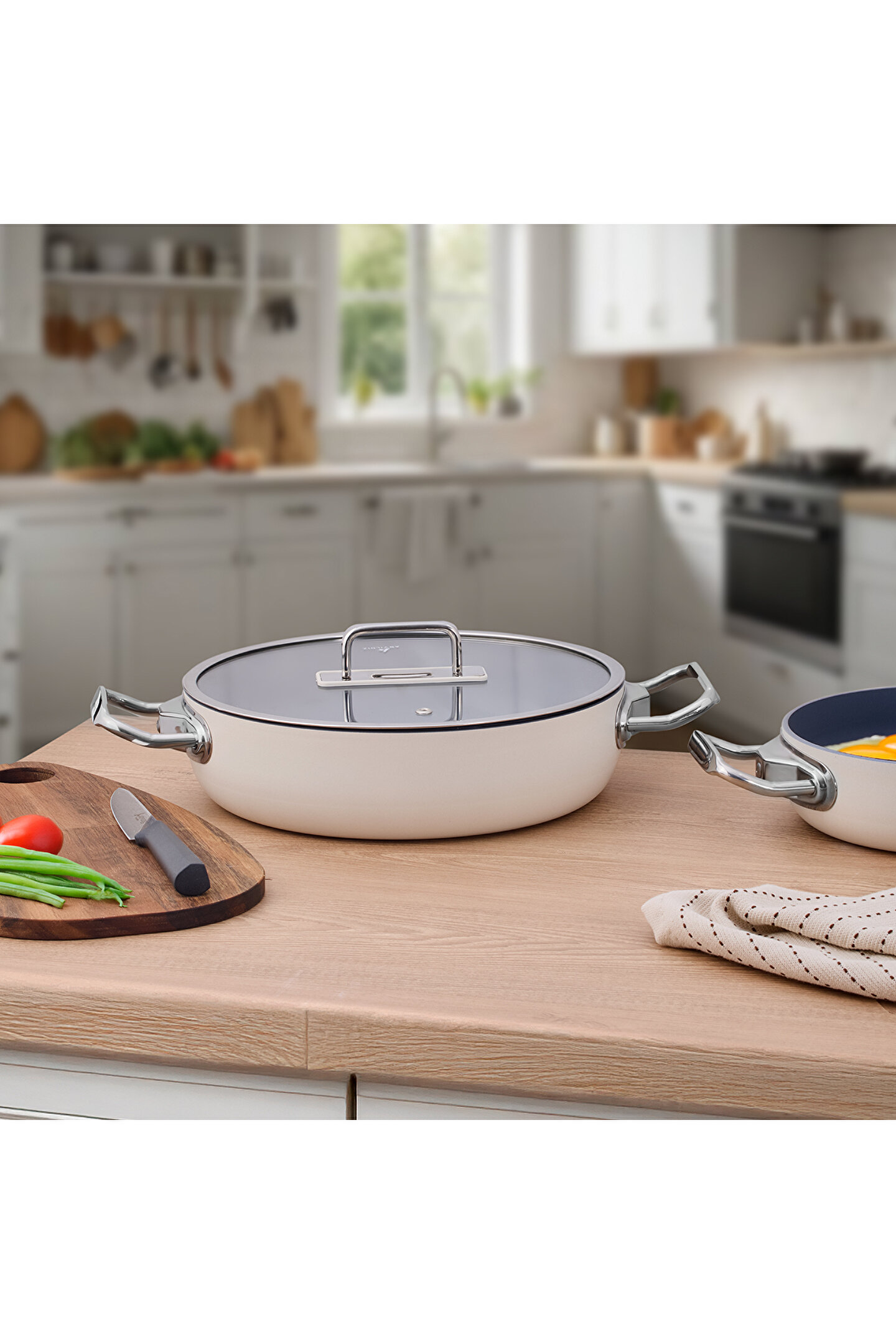 - Seramik iç yüzeyi sayesinde yiyeceklerinizi kolayca pişirirken, temizliği pratik hale getirir.; - Tek parça halinde gelen bu tencere, mutfakta ihtiyacınız olan basitlik ve işlevselliği sunar.; - Alüminyum dış yapısı ile ısıyı eşit şekilde dağıtarak mükemmel pişirme sonuçları elde etmenize yardımcı olur.; - Yapışmaz taban özelliği sayesinde yemeklerinizin tencerede yapışmasını önler ve temizliği kolaylaştırır.; - Canlı renkleriyle mutfağınıza modern bir dokunuş katar ve görsel zenginlik sağlar.; - Metal malzemeden üretilmiş olması dayanıklılığı artırırken, uzun süreli kullanım vaat eder.; - 26 cm boyutuyla ideal büyüklükte olan bu tencere, çeşitli yemek tarifleri için uygundur.; - Çok renkli tasarımıyla mutfak dekorasyonunuza şıklık katarken, fonksiyonellikten ödün vermez.