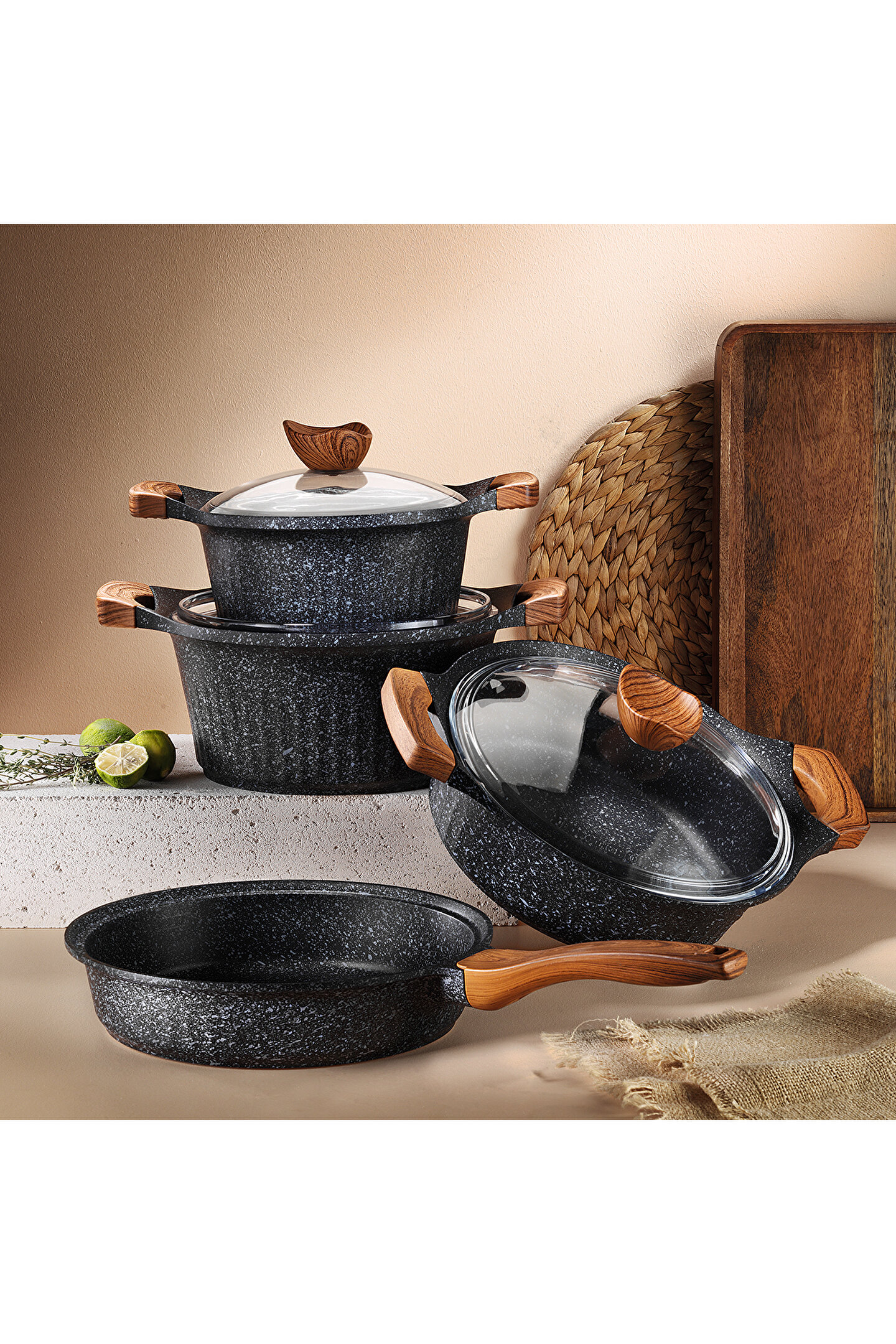 Aryıldız pişirme ürünleri, üstün pişrime performansı ve kolay temizleme imkanı sağlayan birinci sınıf granit kaplaması ile mutfakların vazgeçilmezi olacak.; Döküm alüminyum gövde sayesinde ürünlerin her noktasında homojen ısı dağılımı sağlanır.; Enerji tasarrufu sağlar.; Daha rahat bir tutuş ve daha fazla konfor için ergonomik sapa sahiptir.; Üstün yapışmazlık özelliği sayesinde az yağ kullanarak daha sağlıklı ve lezzetli yemekler yapmanızı sağlar.; Ahşap mutfak gereçleri ile kullanımı daha uzun ömürlü olmasını sağlar.; Bulaşık makinesinde yıkanabilir.; Set İçeriği 1 Adet 20 cm Derin Tencere + Kapak 1 Adet 24 cm Derin Tencere + Kapak 1 Adet 26 cm kısa Tencere + Kapak 1 Adet 26 cm Tava