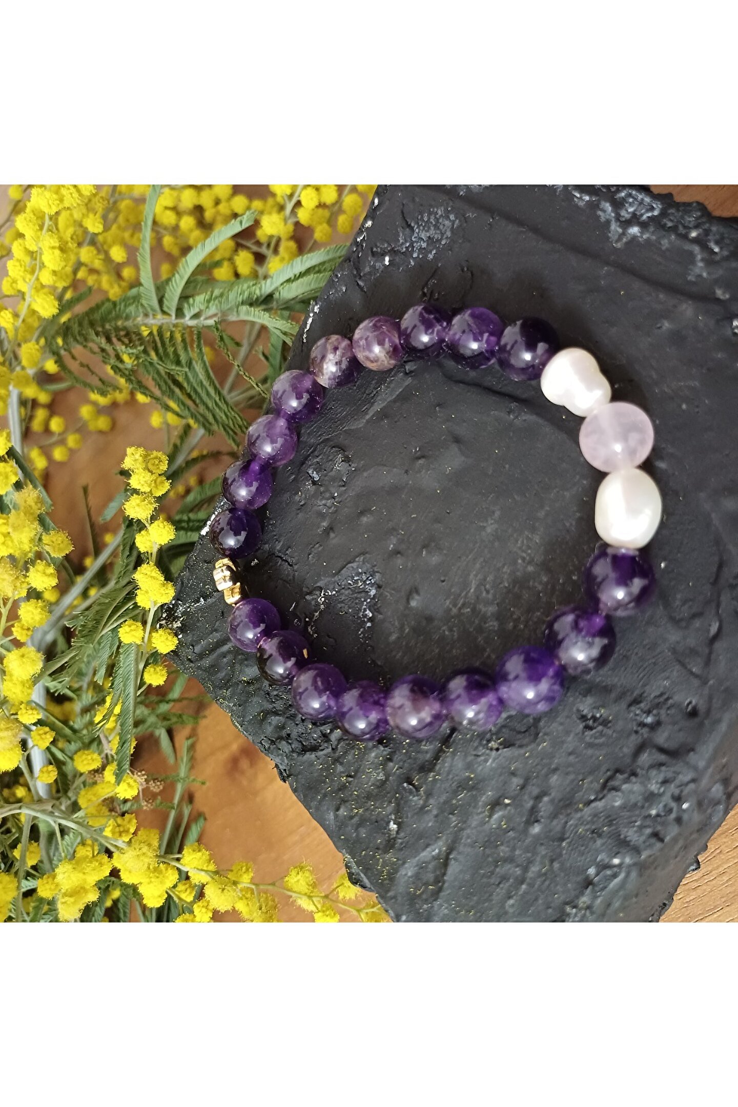 arzela Doğal Taş Ametist Bileklik Pozitif Enerji ve Koruma Bilekligi 8mm