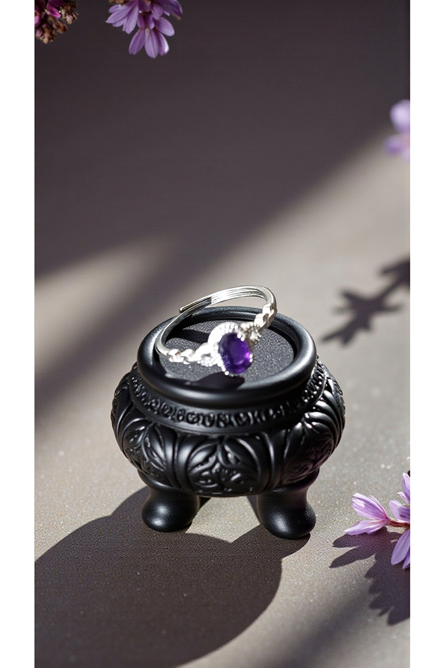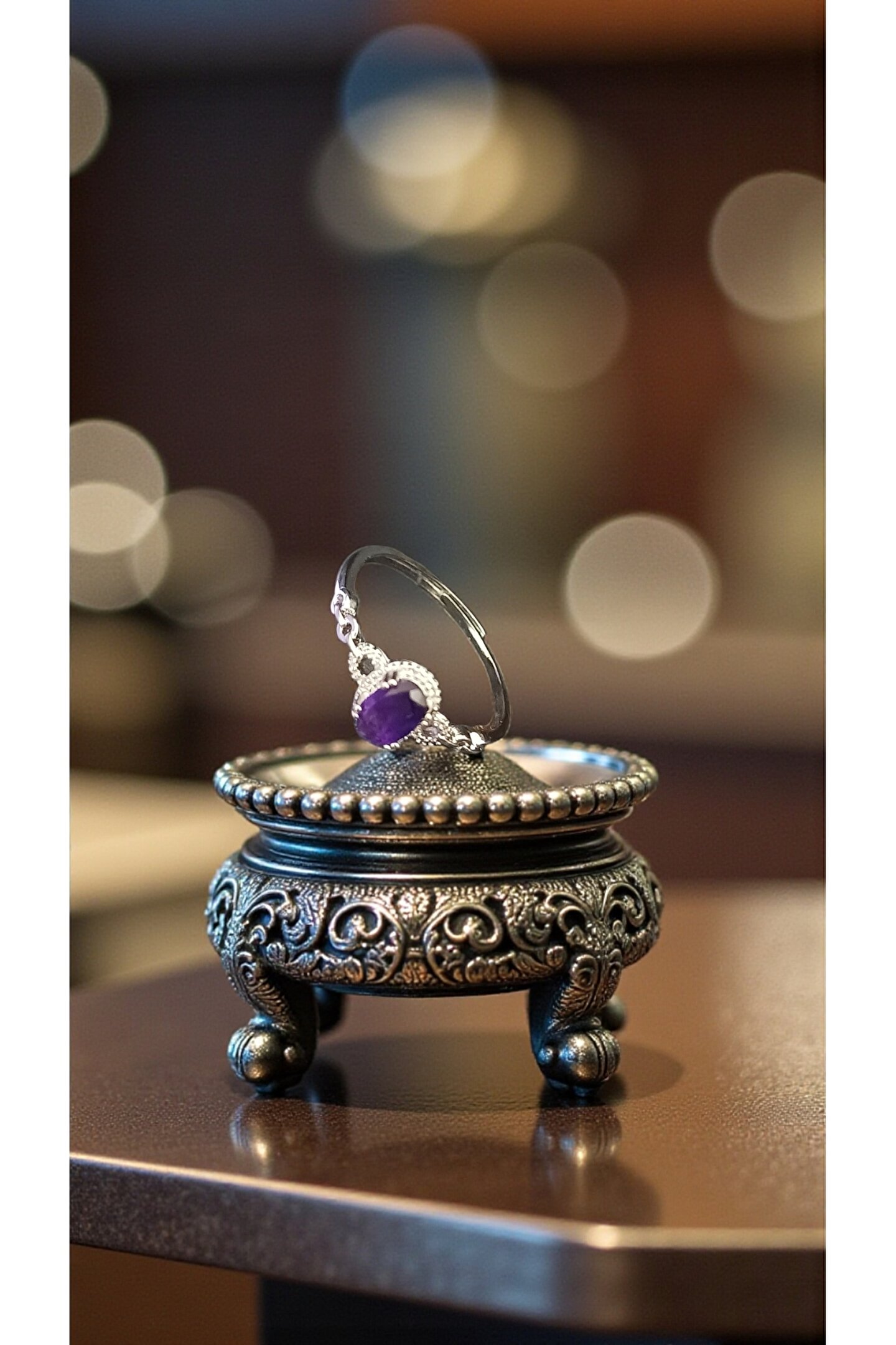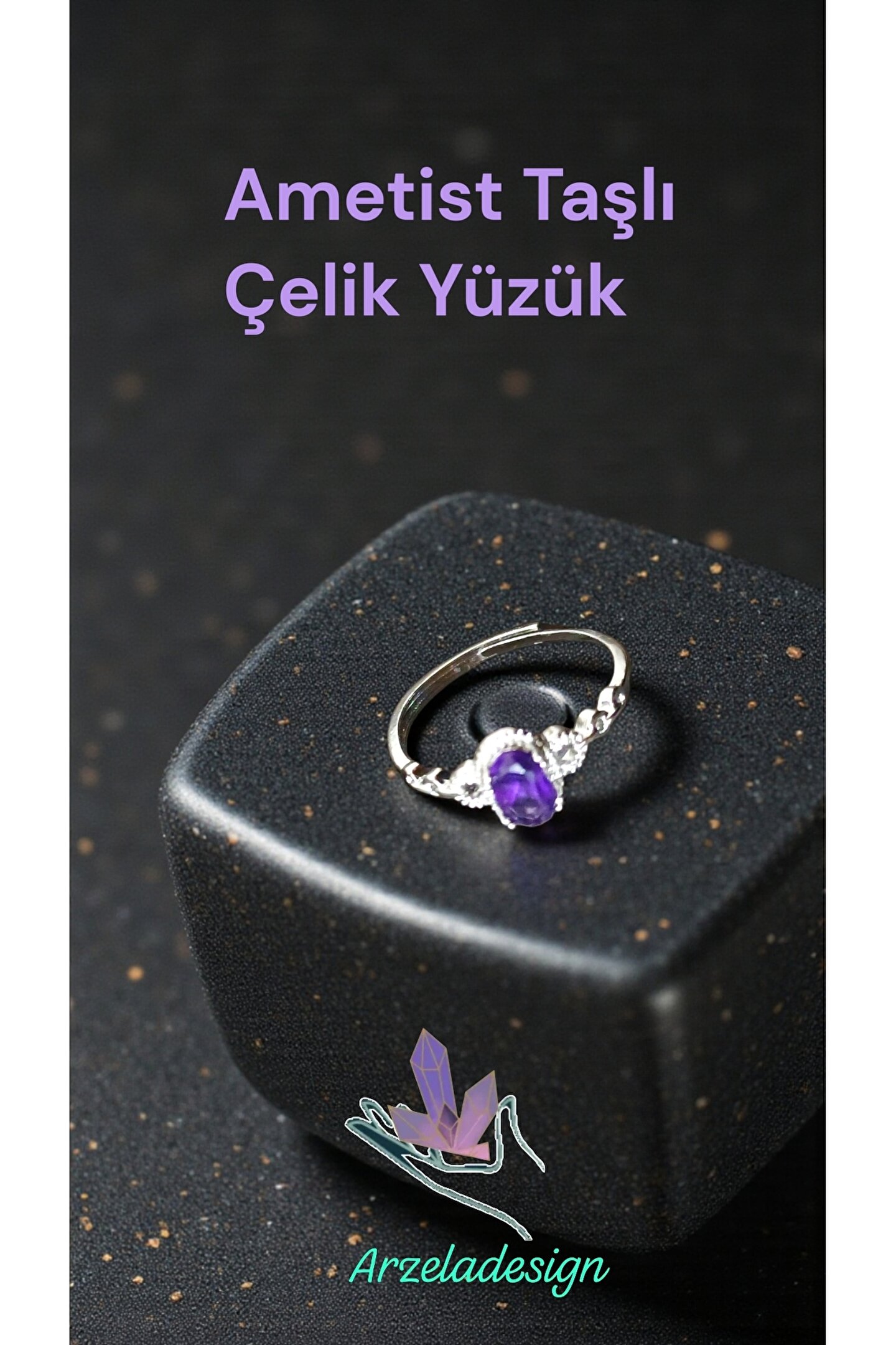 arzela Doğal Taş AMETİST Çelik Yüzük Ayarlanabilir Ebat