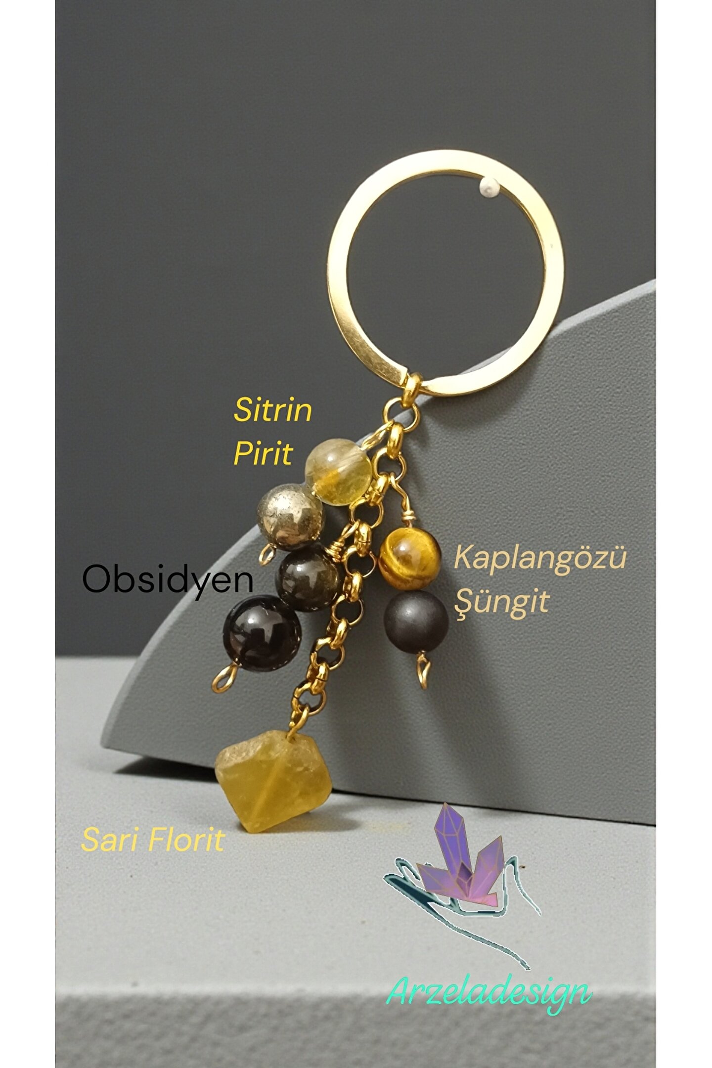 Sari florit sifasi (bakiniz) Sitrin ve pirit bir arada para ve boluk bereket enerjisi olusturur Kaplan gözü bilgeligik tasidir Şungit koruma tasidir ayni zamanda etrafinizdaki radyasyonu temizleme ozelligine sahiptir