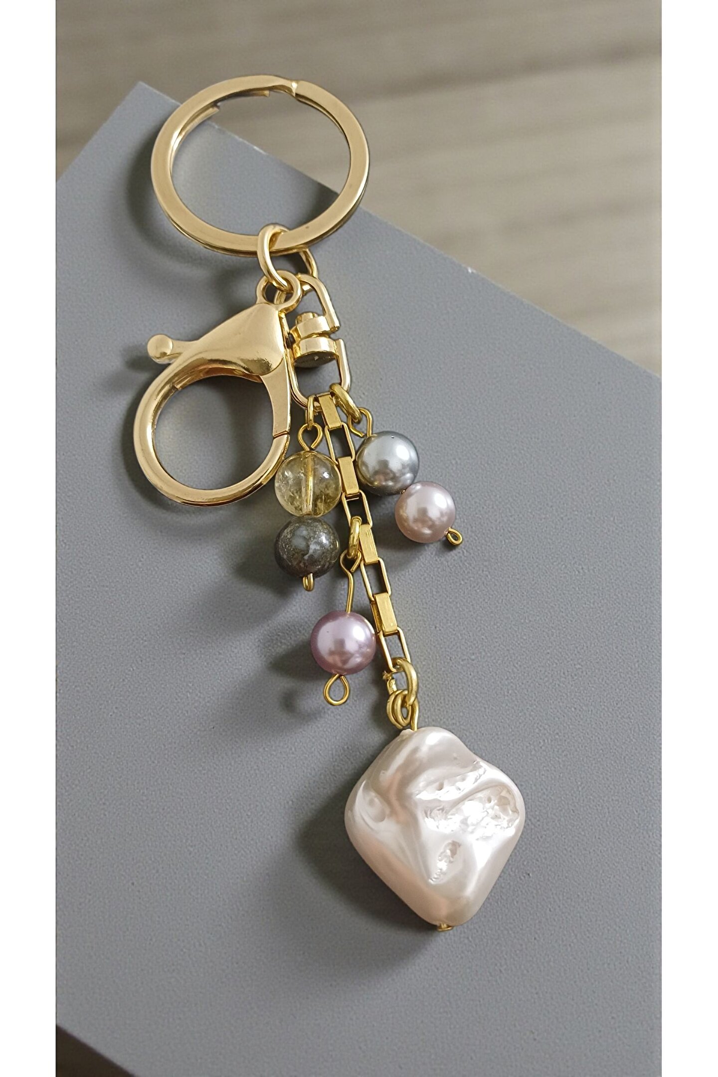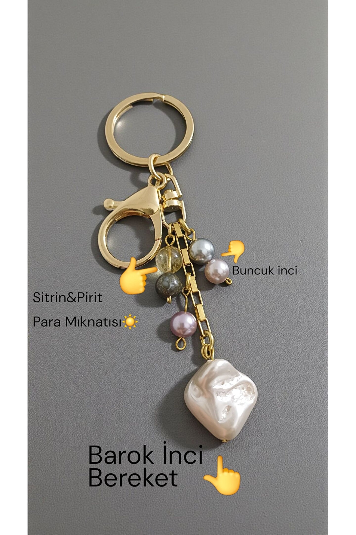 arzela Doğal Taş Anahtarlık Barok İnci Sitrin Pirit Bolluk ve Berekt Anahtarligi