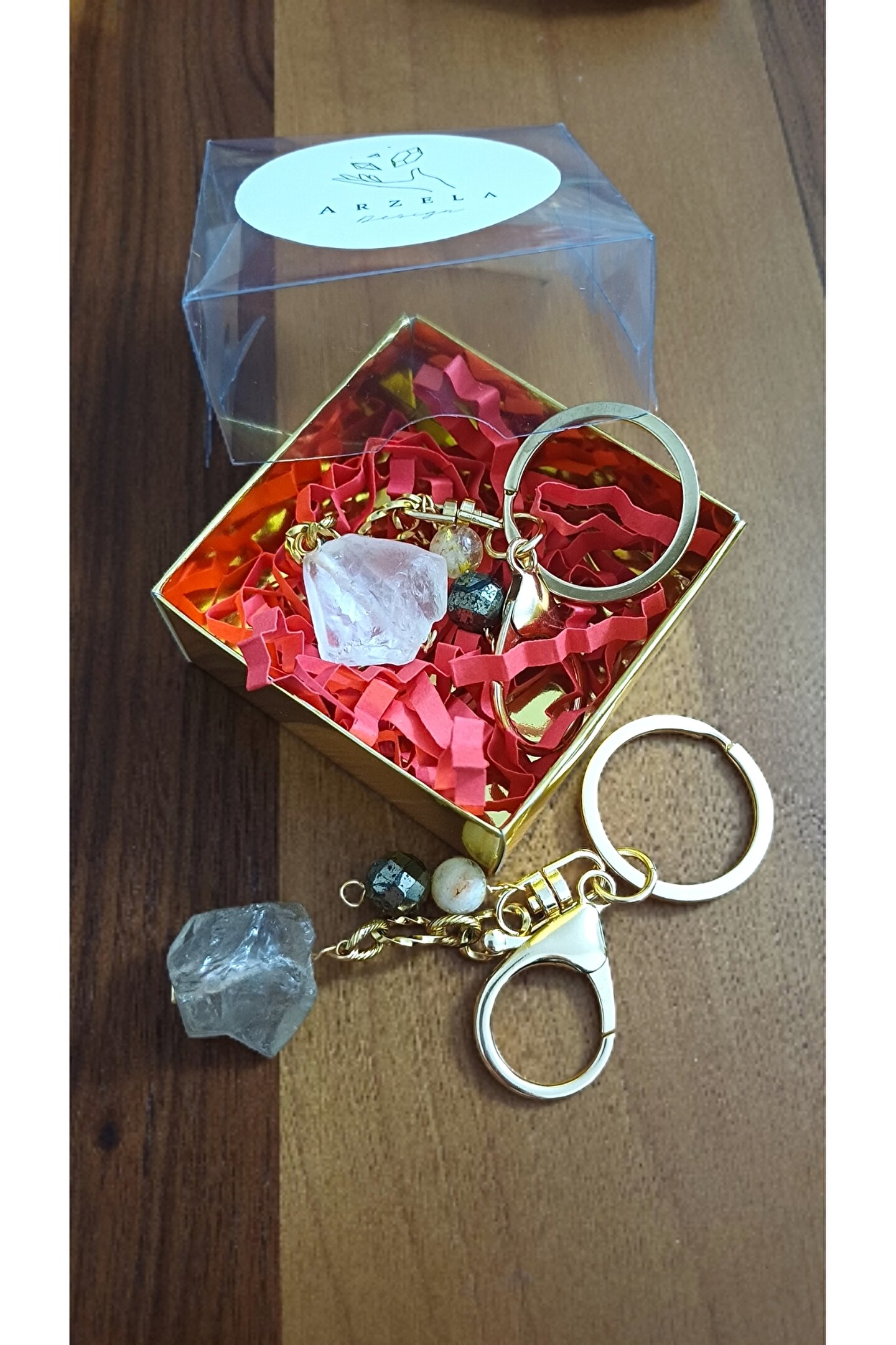 arzela Doğal Taş Anahtarlık Kristal Kuvars Sitrin Pirit Para Bereket Koruma 8mm 2 cmm çelik zincir