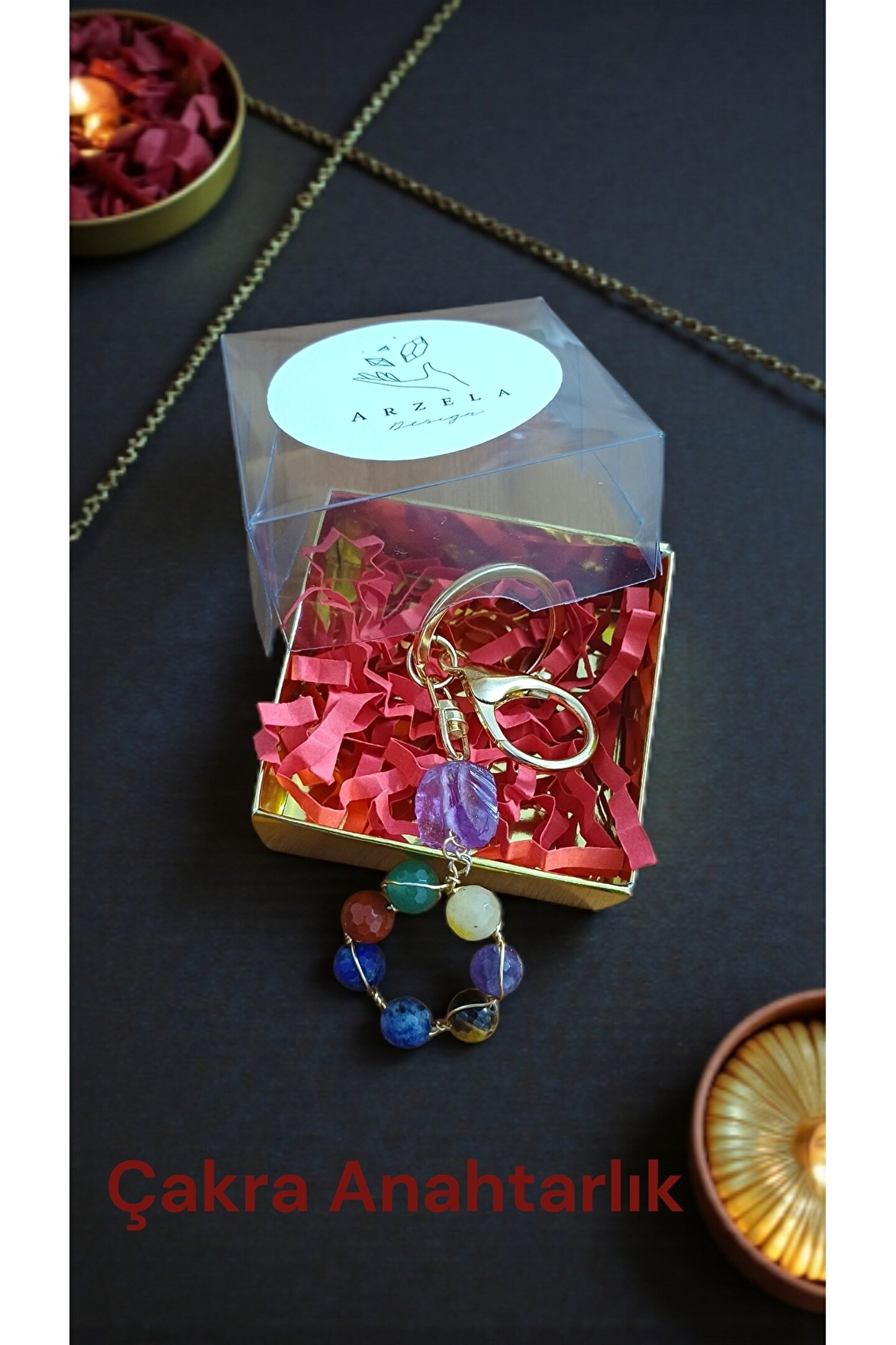 arzela Doğal Taş Çakra Anahtarlık Faset kesim 8mm 7 li kristal.Ametis dogal kesim