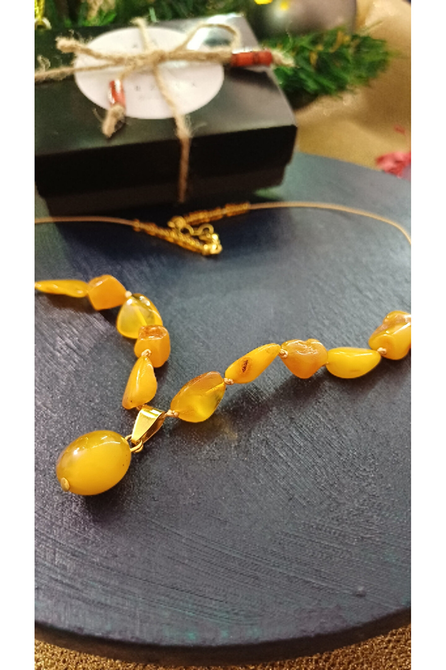 Damla Kehribar kolye (çelik aparat): Doğal damla kehribar taşından yapılmış kolye; metal kısmı (zincir / aparat) paslanmaz çelik — bu da kolyenin uzun ömürlü, dayanıklı ve günlük kullanıma uygun olmasını sağlar.; Fosilleşmiş ağaç reçinesidir, çok hafif ve sıcaktır.; Negatif enerjiyi azalttığına ve nazardan koruduğuna inanılır.; Stres, huzursuzluk ve gerginliği hafiflettiği söylenir.; Bebeklerde diş kaşıma döneminde rahatlatıcı etkisi olduğuna inanılır.; Doğal, sıcak tonlu ve şık bir taştır; kolye ve bilekliklerde sık kullanılır.