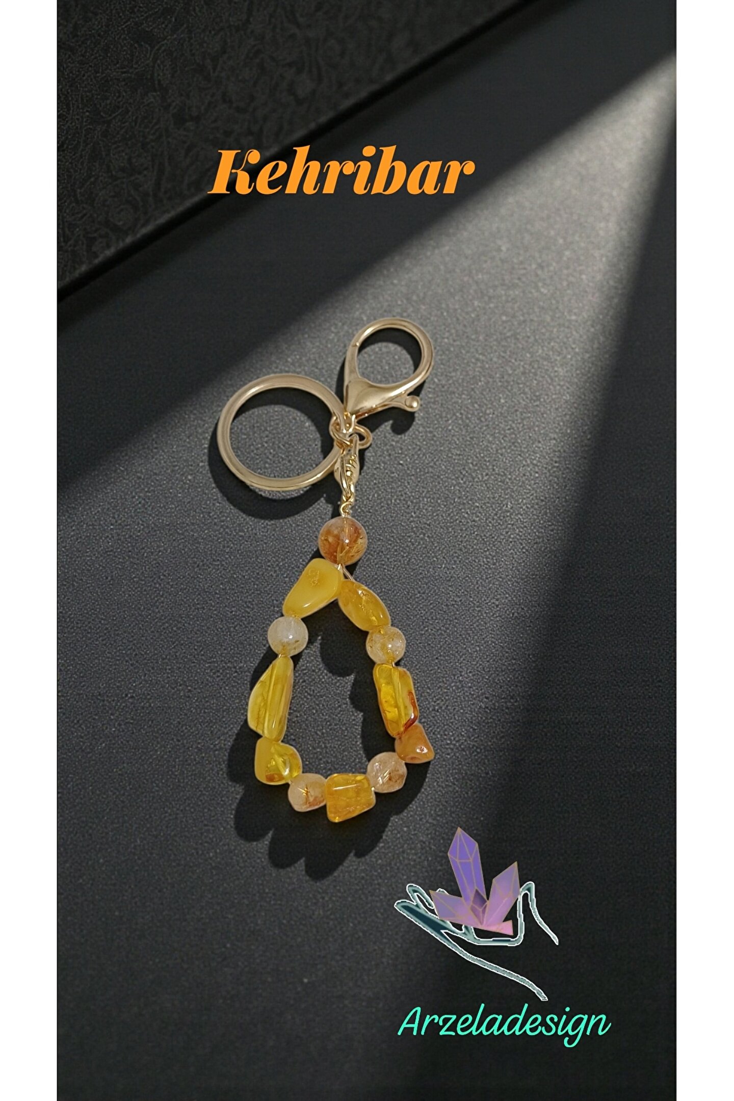 arzela Doğal Taş Damla Kehribar & Sitrin Anahtarlik Bereket Koruma