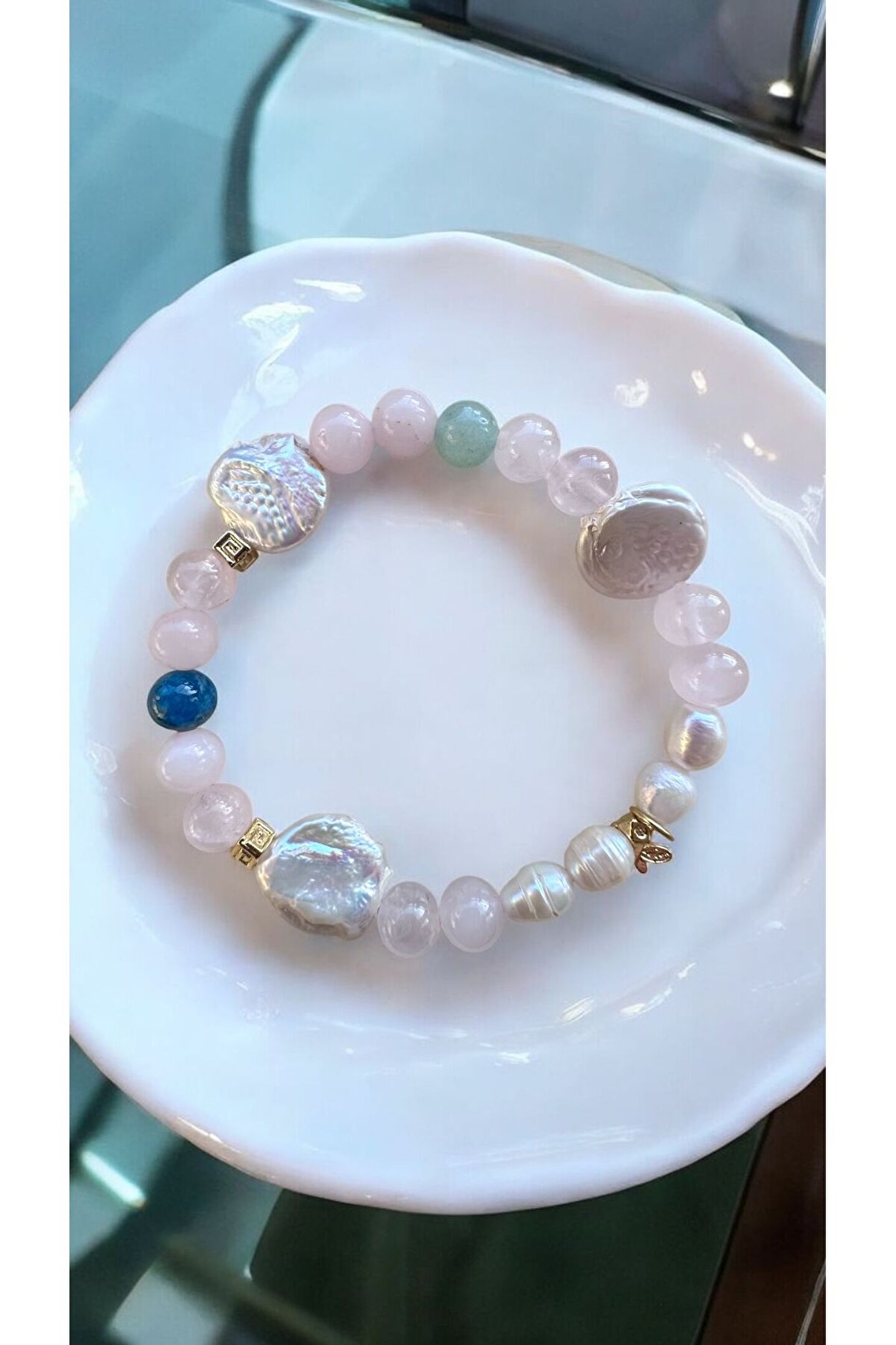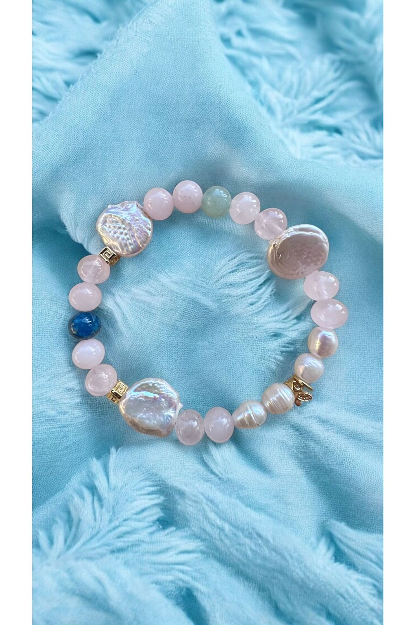 Dişil enerjiyi saflığı ve zerafeti temsil eden İNCİ Aşkı temsil eden PEMBE KUVARS,bereket, sezgi ve uğur taşı olan AVENTURİN İlham taşı olan APATIT Pozitif enerjiyi toplayan altıncı hissi, sevgi ve şefkat duygularını güclendiren KRİSTAL KUVARS ile formullenen bu bileklik Saf Aşk ve Disil Enerji Bilekliğidir Bu bileklik özel olarak sayılar ve taşların özel sifasi ile formüle edilmiştir Her taşın sifasi yanına gelen diğer taslar ile farklı bir hal alır.; Yeni bir formül olusur Materyal altin kaplamadir su ve kimyasala temas ettirmeyiniz Kutuda ve yedek misina ile gonderilecektir