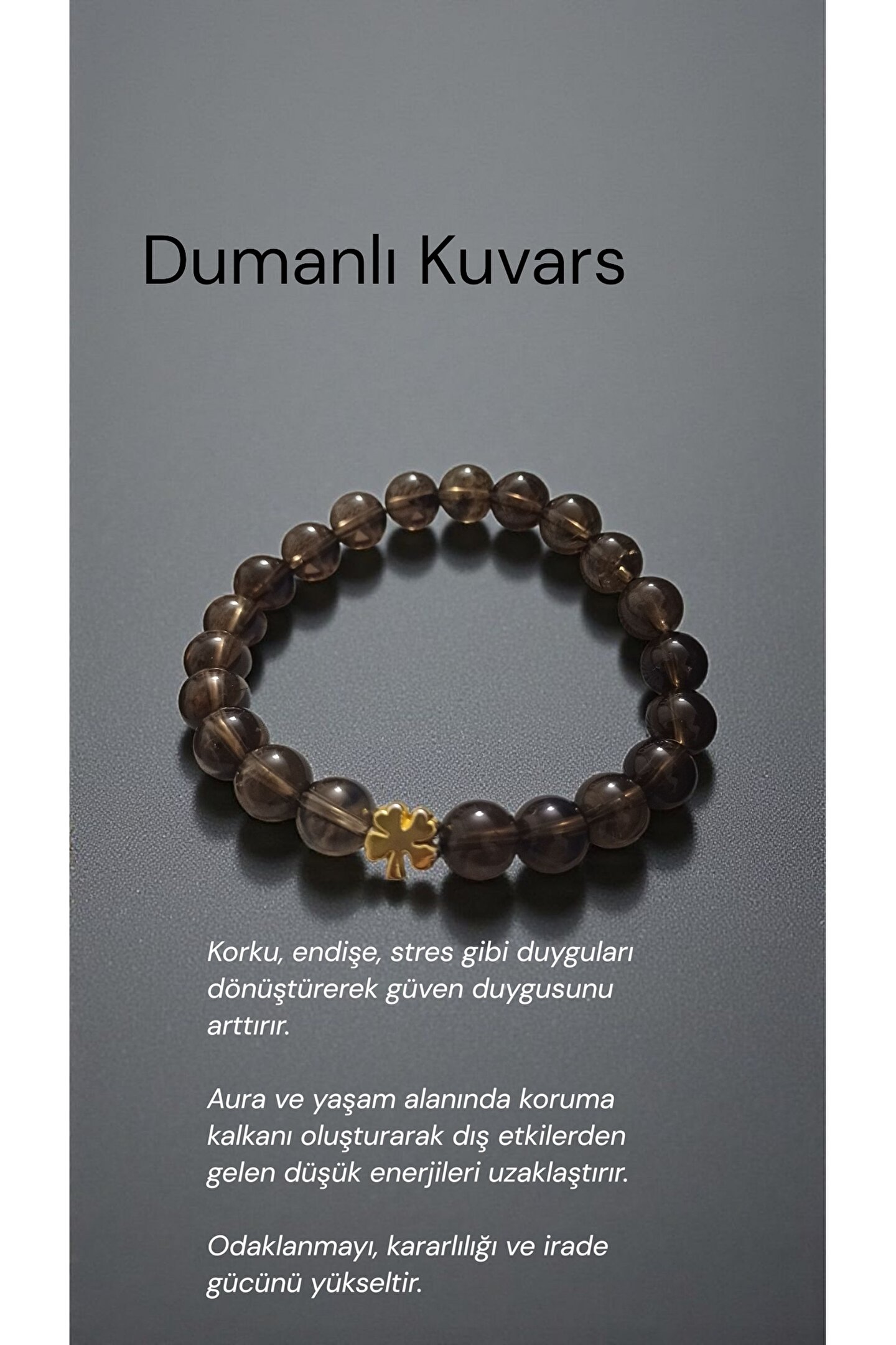 Dumanlı Kuvars Negatif enerjiyi dönüştüren güçlü bir koruyucu taştır.; Stres, kaygı ve gerginliği azaltmaya yardımcı olduğuna inanılır.; Topraklama etkisi yüksektir; zihni sakinleştirir, denge sağlar.; Kişiyi daha net düşünmeye ve odaklanmaya destekler.; Günlük enerjiyi düzenleyen, huzur veren bir taştır.