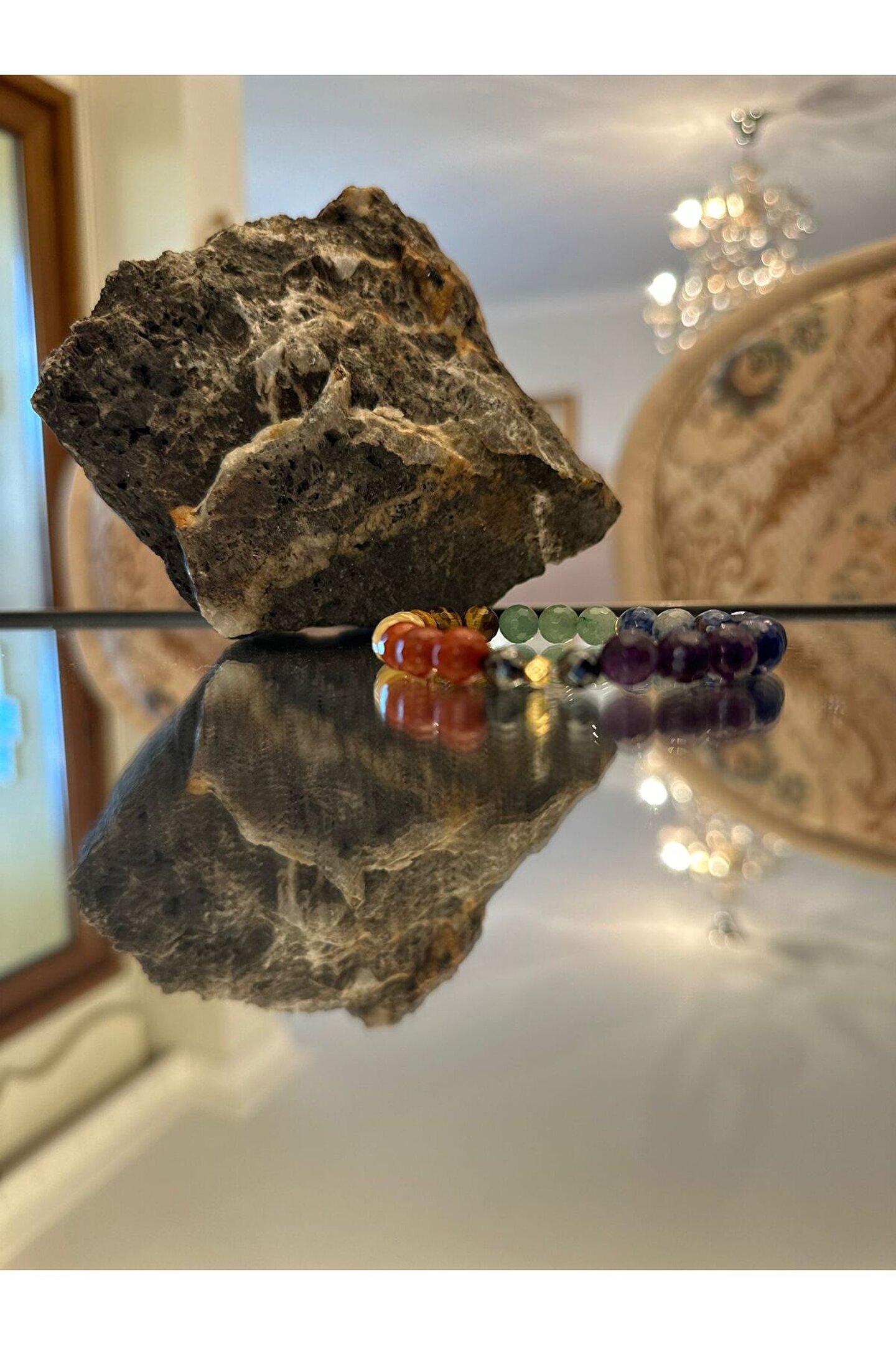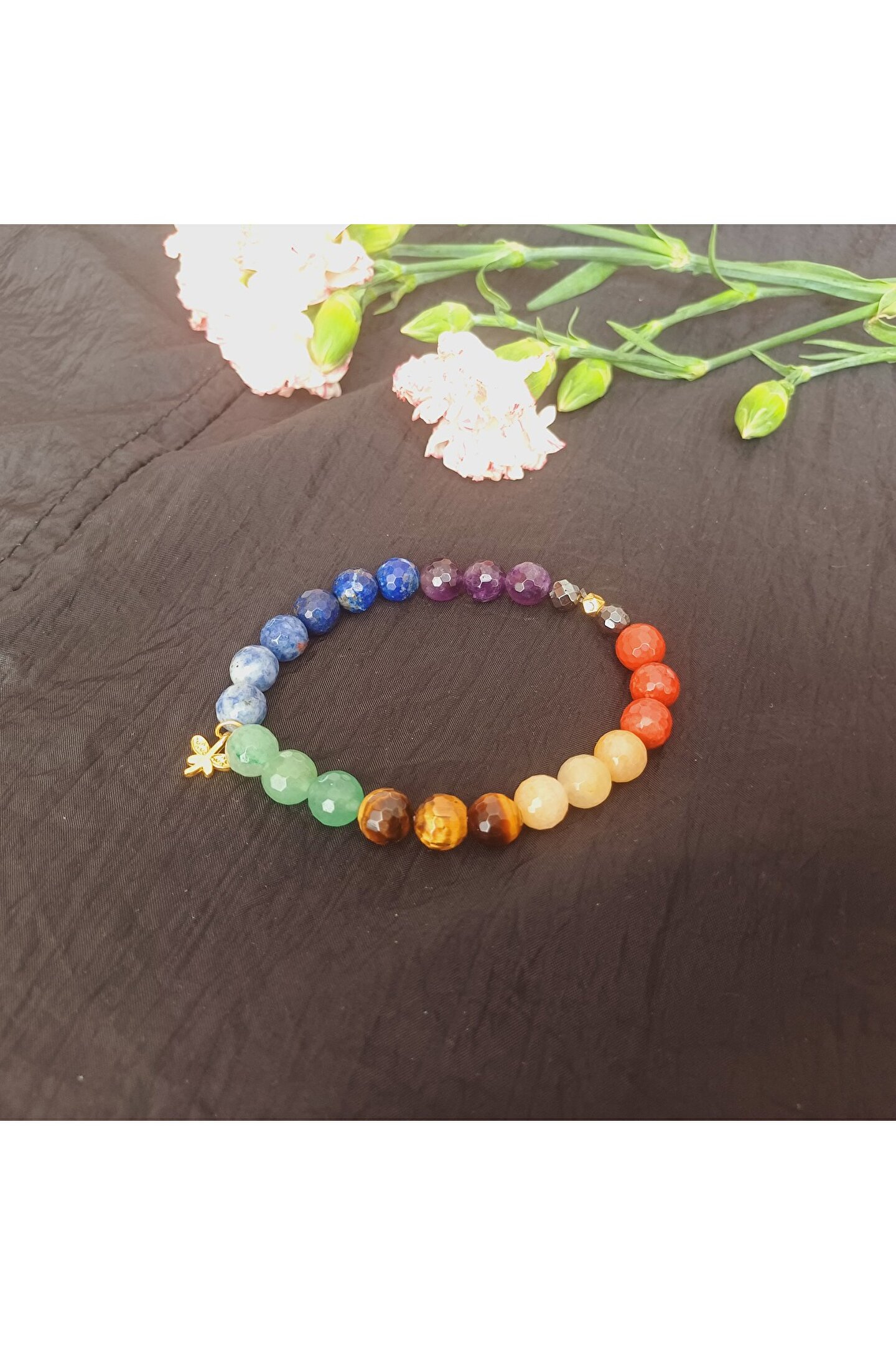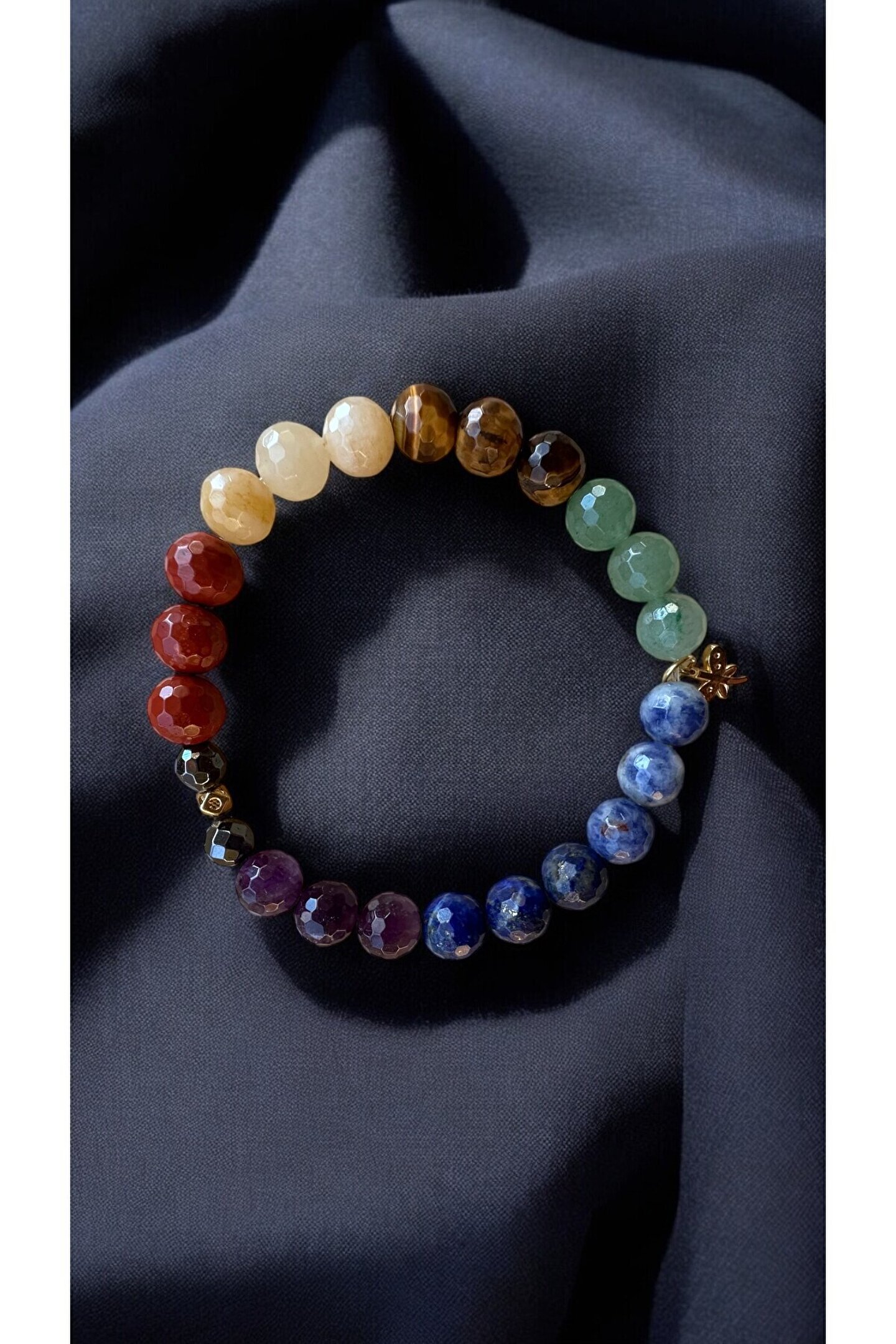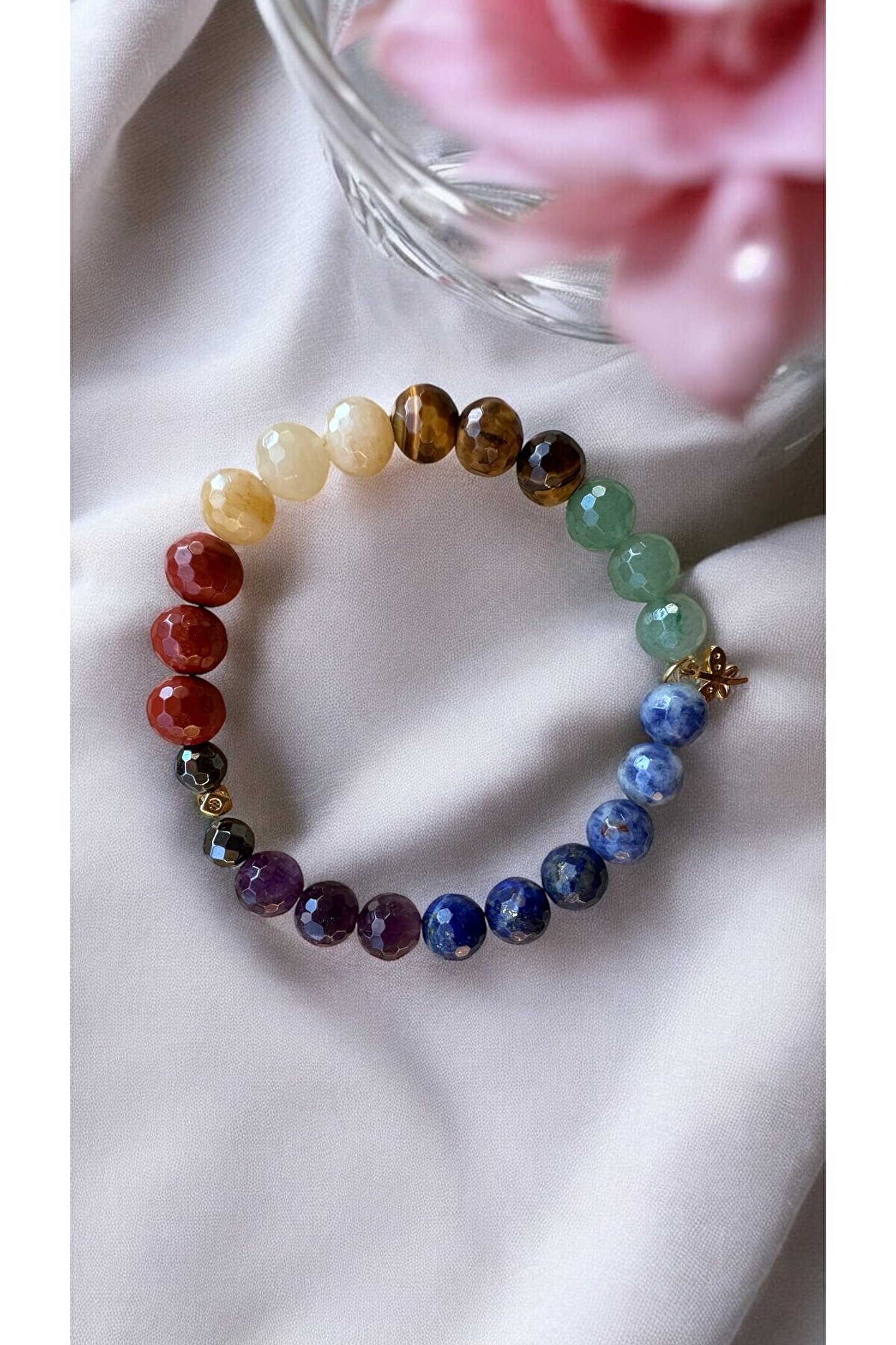 Ametist ; Krizokol ; Lapis Lazuli ; Aventurin ; Kaplan Gözü ; Sarı Opal ; Jasper ; Hematit ; Gümüş kaplama aparat ; Her tasın şifası yanına gelen taşlarla farklı hal alır,formüllenir.; ; Taslar 7 cakraya hitap eder Bedeni topraklar,olumsuz enerjiden arındırır,korur Kişiye sükunet verir Zihni sakinlestirir Düşünceleri netlestirir