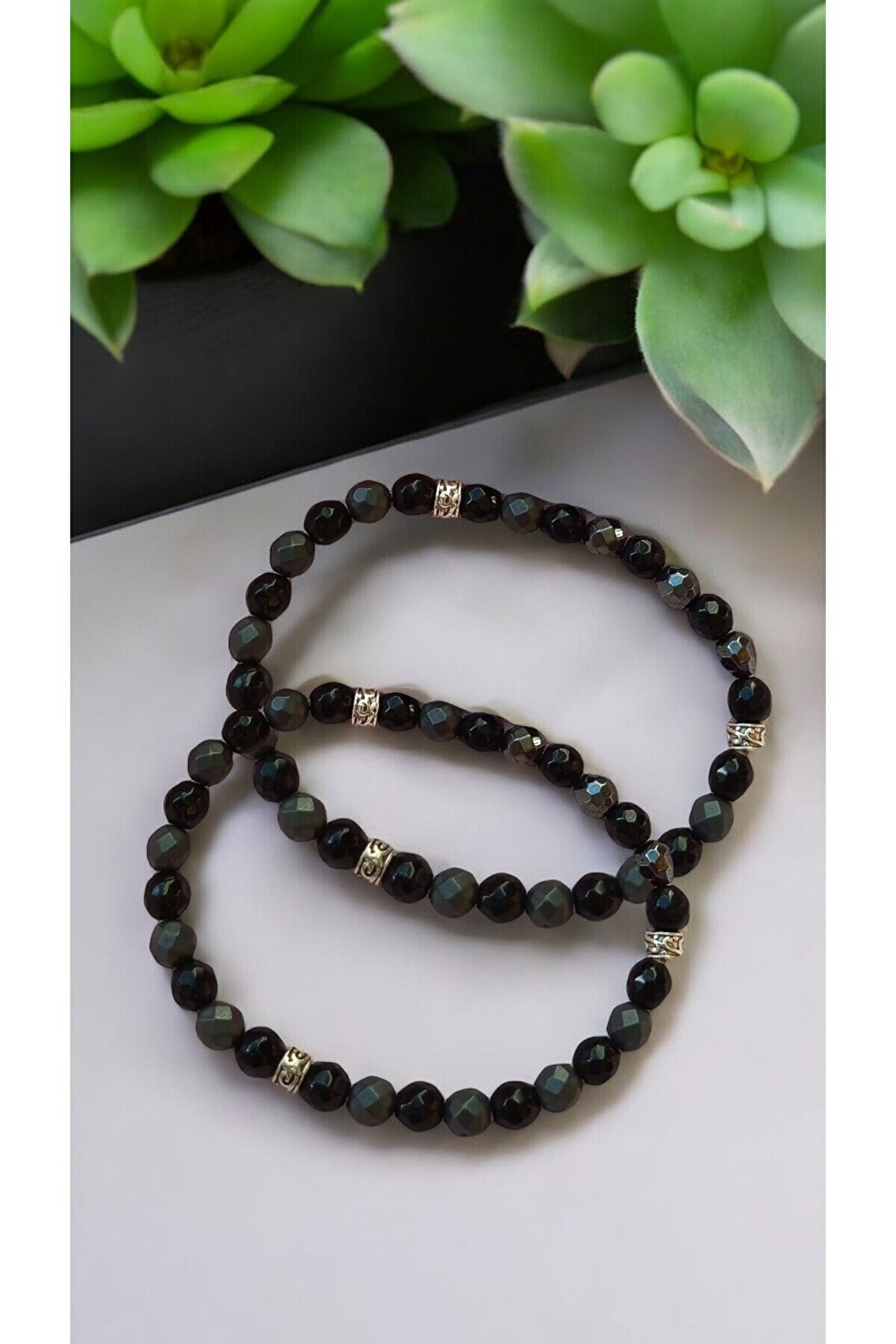 arzela Doğal Taş Hematit Ve Boncuk Bileklik 2 Li