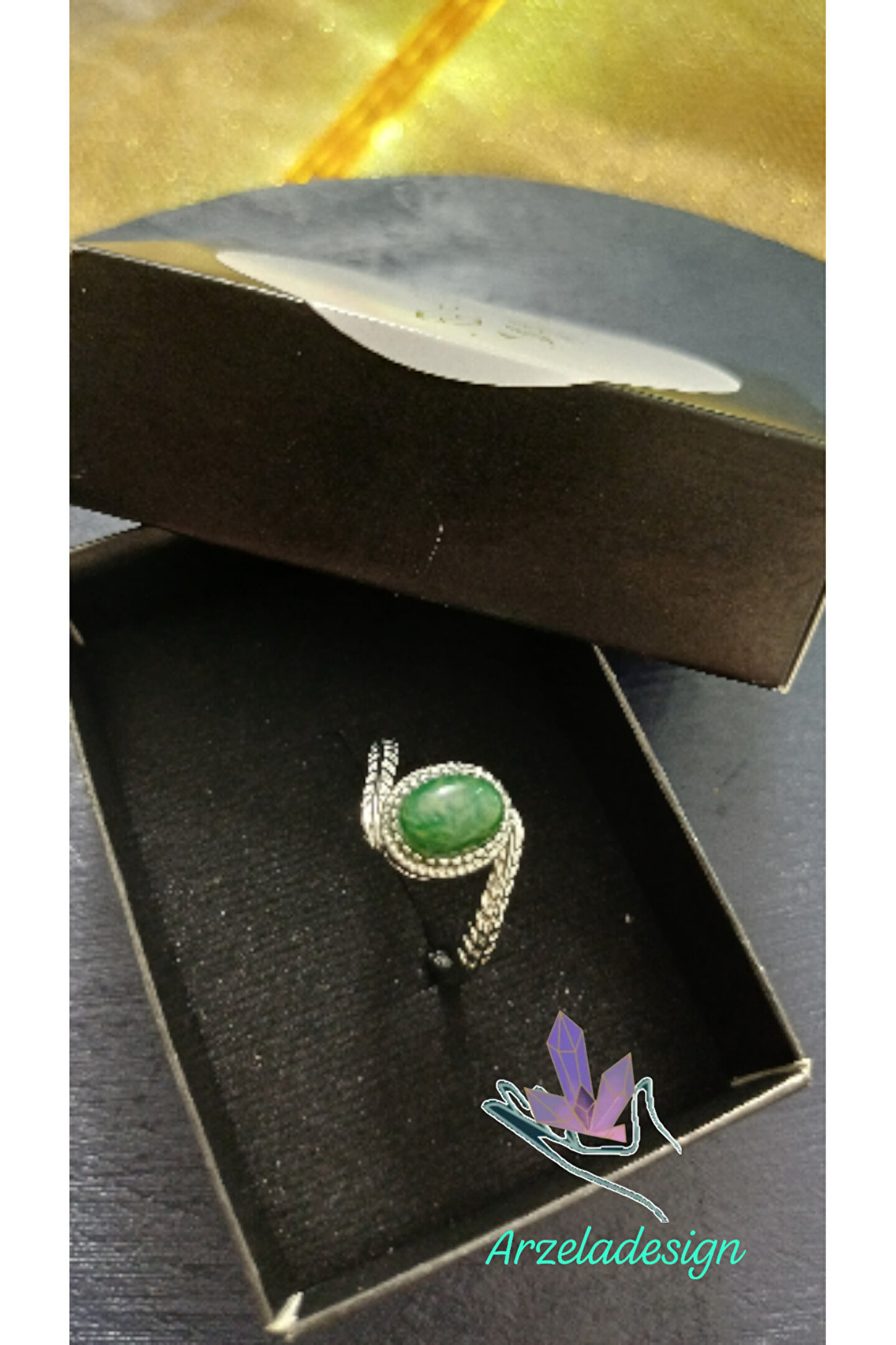 arzela Doğal Taşlı Çelik Yüzük Ayarlanabilir Ebat