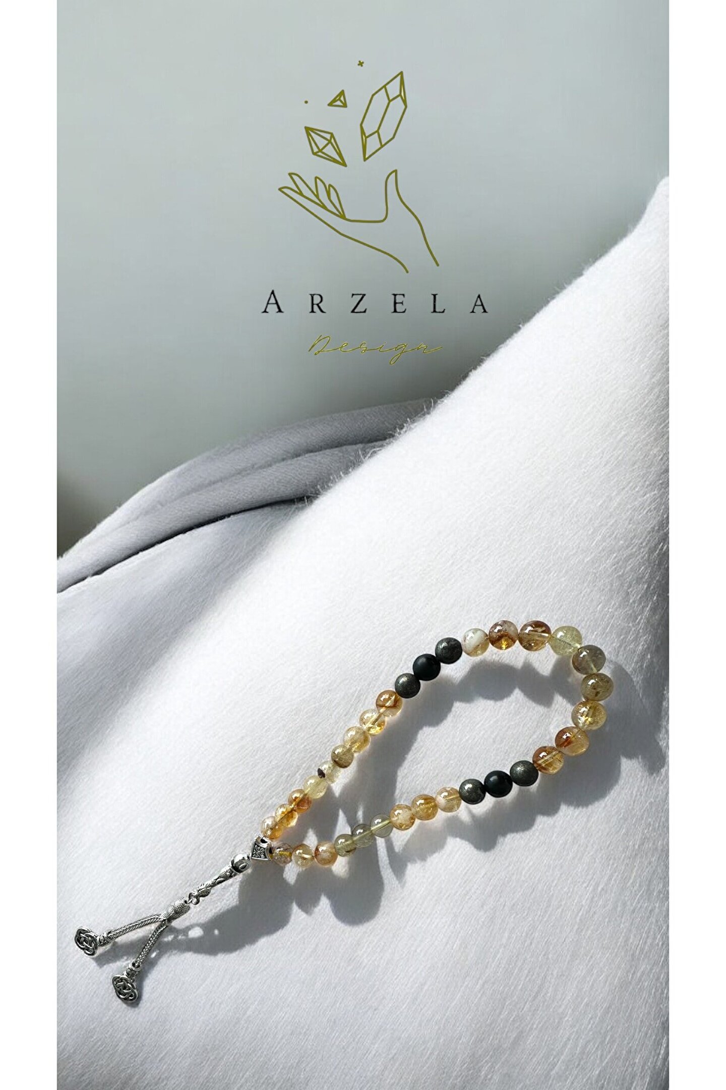 -Doğal taşların eşsiz dokusu ve gücüyle tasarlanmış, bu tılsım, hem şıklığı hem de koruyucu özellikleriyle dikkat çeker.; Sitrin pirit ve sungit güçlü bir aura olusturur Sitrin ve pirit para ve bereketi temsil ederken Sungit korumayı temsil eder Birlikte güçlü bir Şifa enerjisi oluşur Her taş yanına gelen diğer taşların kimyasiyla formüle olur Taslar kişinin ruh haline ve ortamın enerjisine göre ısı değiştirir,bedeni dengeye çeker sakinlestirir,topraklar TESPİH Özel tasarimdir Materyal gümüş kaplamadir Su ve kimyasal ile temas ettirmeyiniz