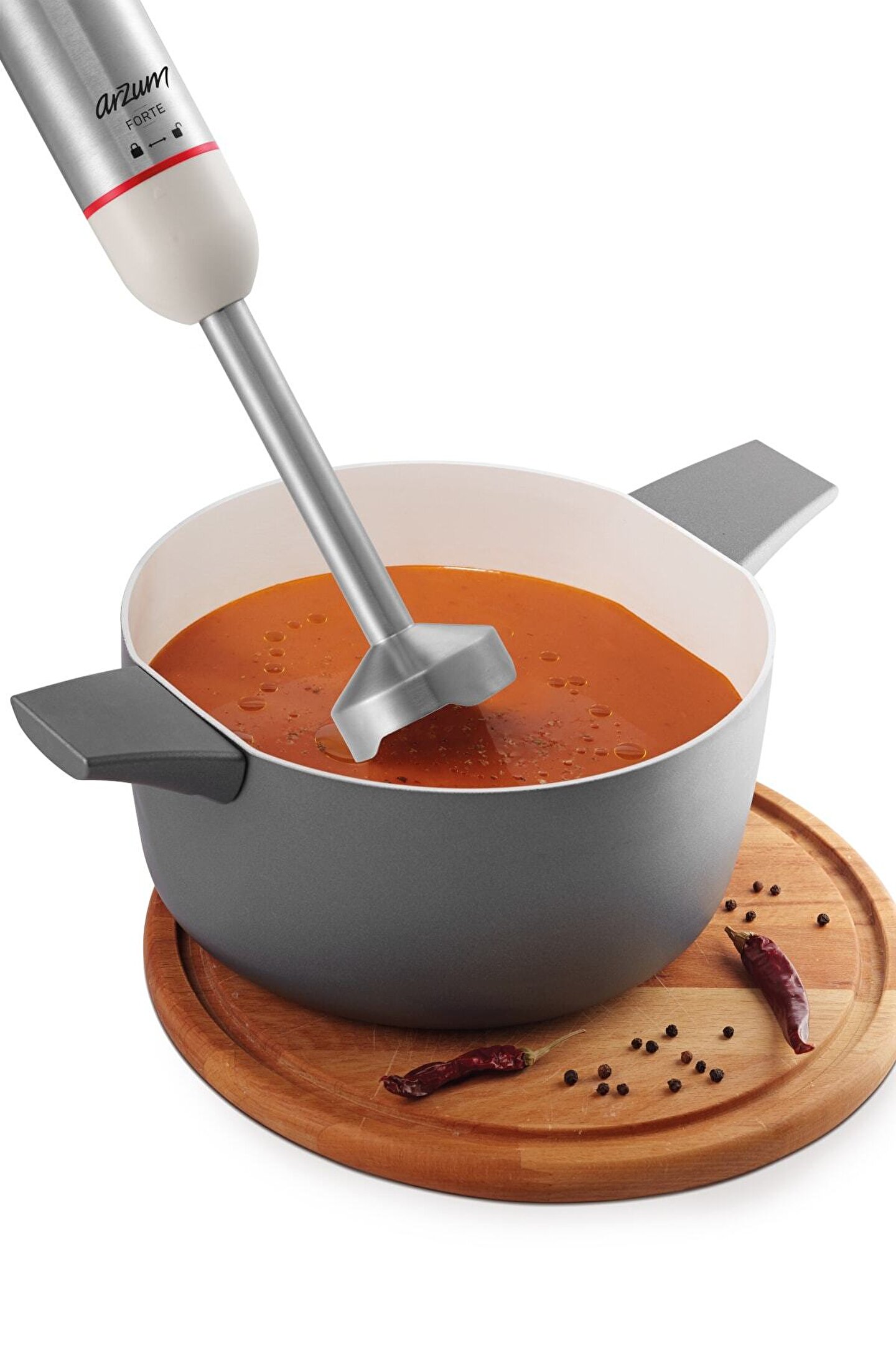Resmi distribütör garantisi ile güvenli alışverişin keyfini çıkarın.;Arzum Forte Multi Blender Seti, ergonomik tasarımı ve 1000 W motor gücü sayesinde parçalama işlemini saniyeler içinde yapar. ;Tetikli çalıştırma düğmesi ile kullanım kolaylığı sunar ve çalıştırma kontrolünü tamamen size bırakır. ;Dekoratif paslanmaz çelik kaplaması ve iki renk seçeneği ile mutfağınıza şıklık katar.;Doğrama, çırpma, rendeleme, dilimleme ve çubuk blender fonksiyonlarıyla mutfaktaki işlerinizi kolaylaştırır. ;Sebze ve meyveleri kolayca ezerek püre ve ayran yapmaya uygun 800 ml kapasiteli özel ölçü kabı ile pratik kullanım sağlar. ;Paslanmaz çelik blender ayağını güvenle suyla yıkayarak kolayca temizleyebilirsiniz. ;Çift taraflı paslanmaz çelik bıçağı sayesinde et, sebze, soğan, meyve ve kuruyemişleri rahatça parçalar ve kıyabilirsiniz.