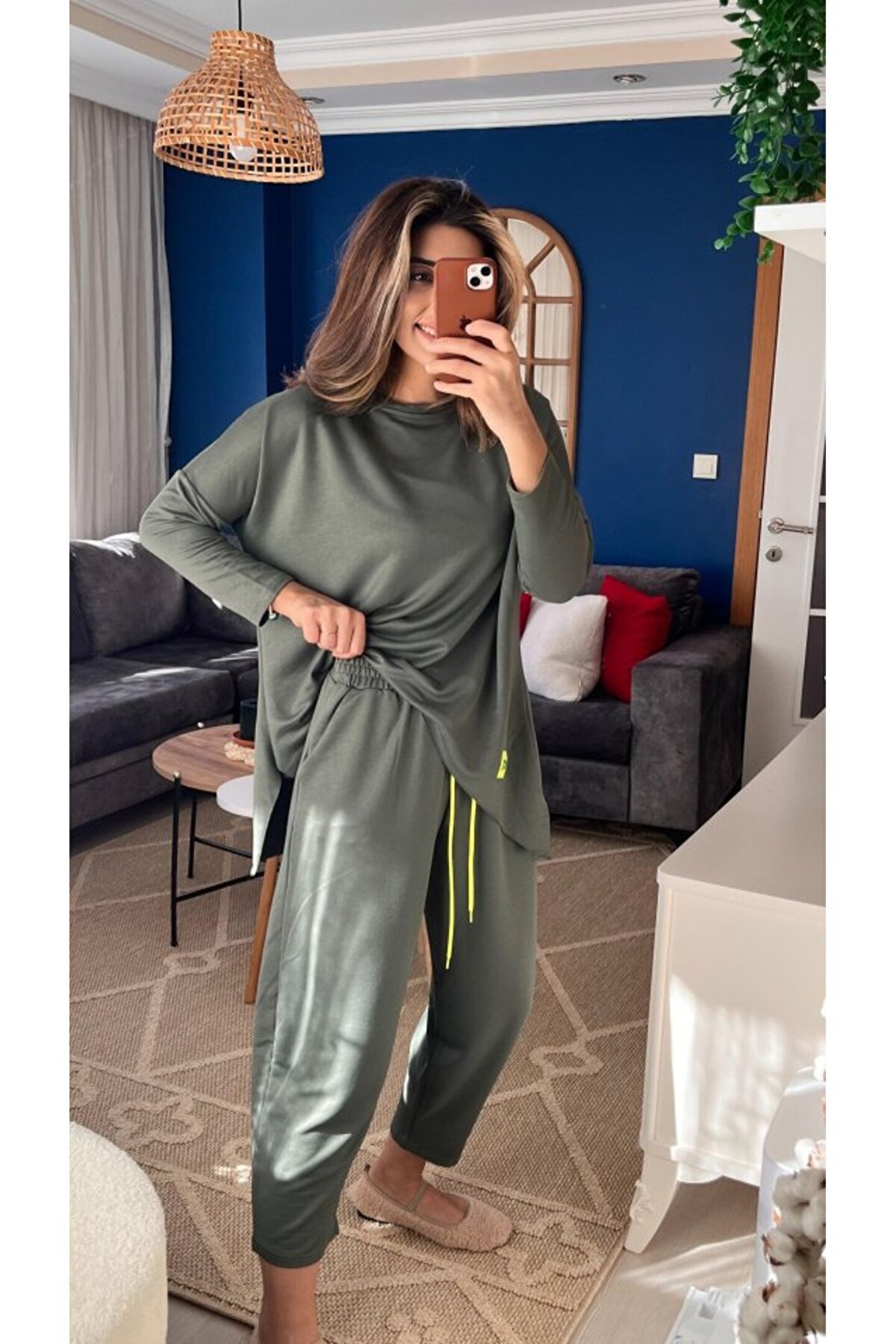 ASFSTORE Kadın Iki Iplik Viskon Pamuk Kumaş Arma Detaylı Ikili Takım