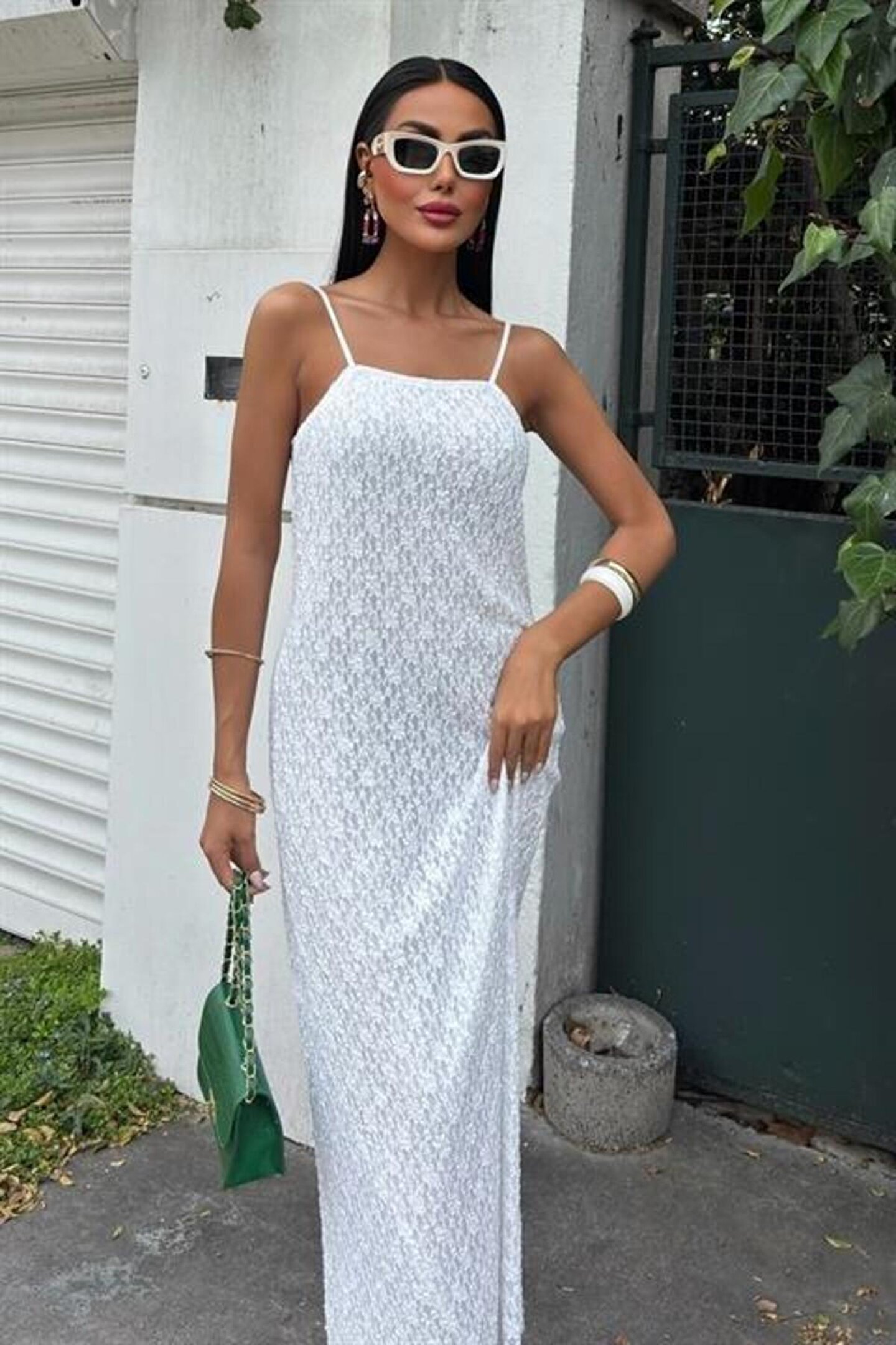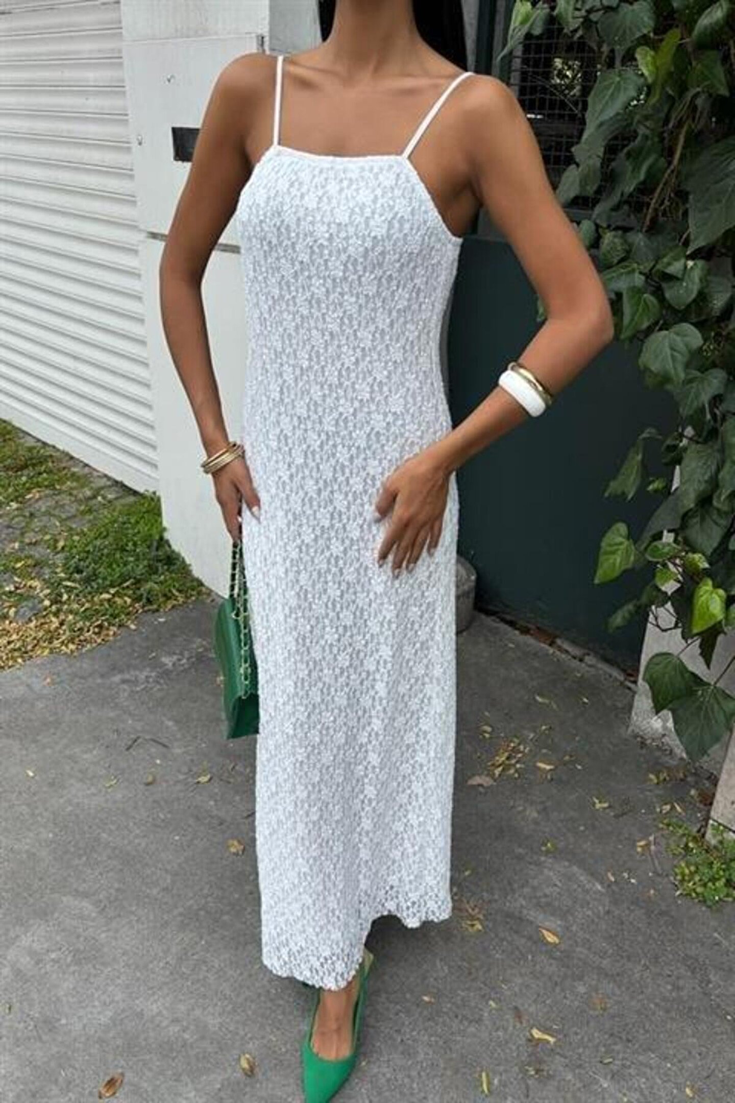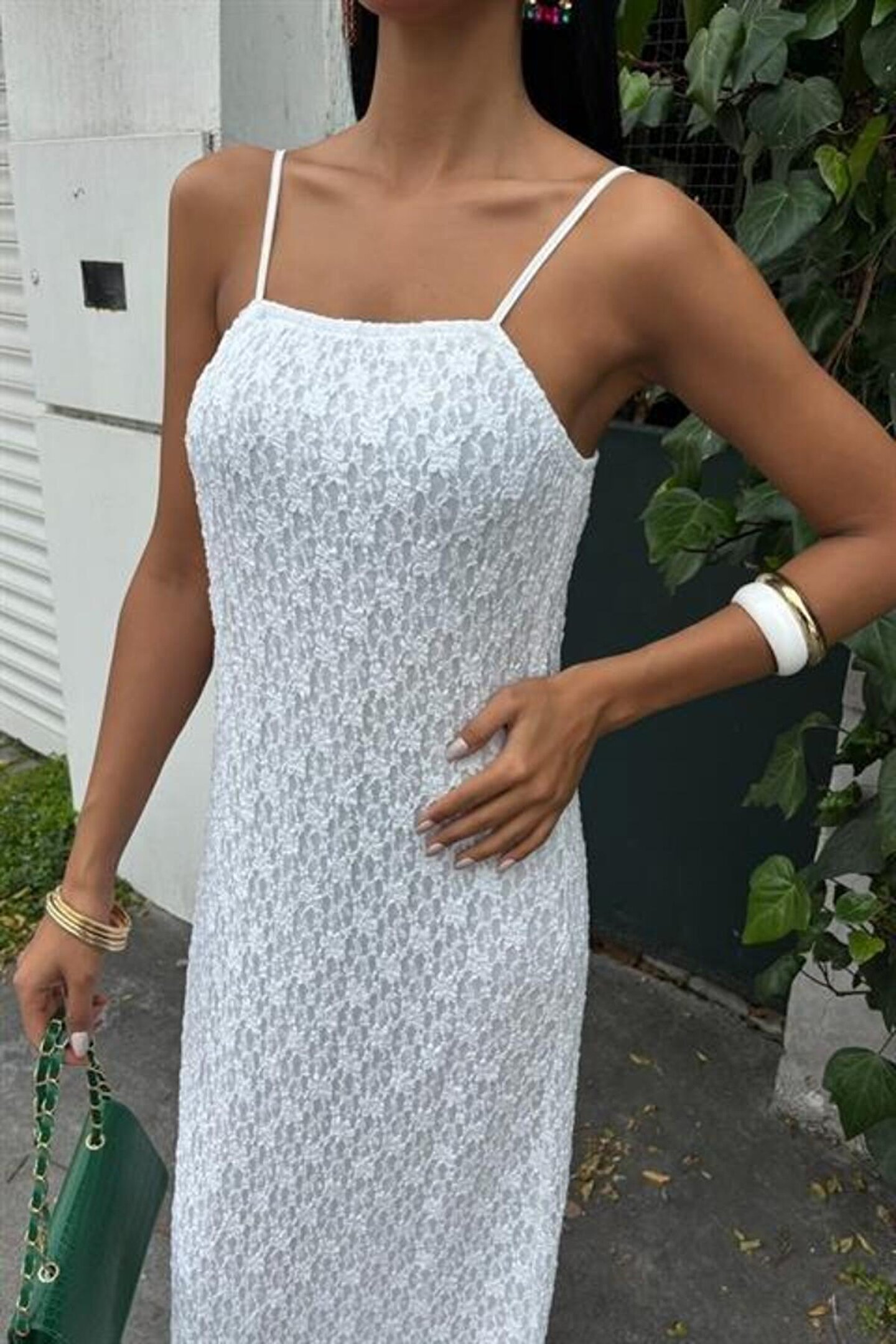 ASH GİYİM Askıları Ayarlanabilir Örme Dantel Elbise 2879