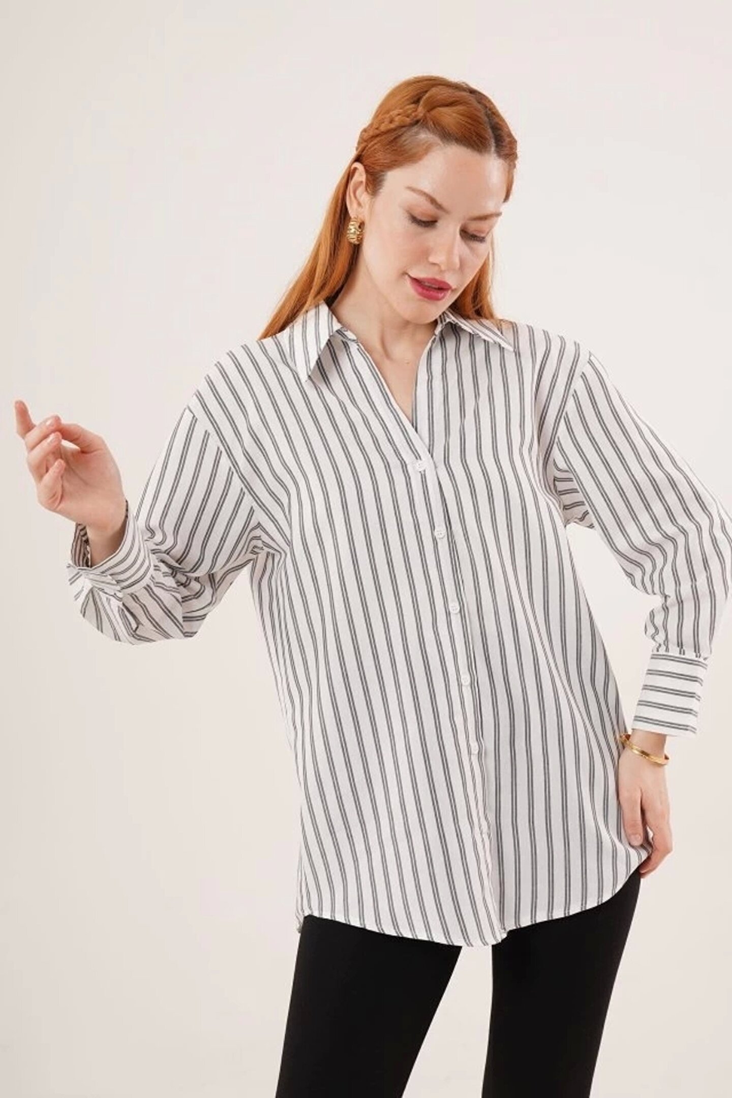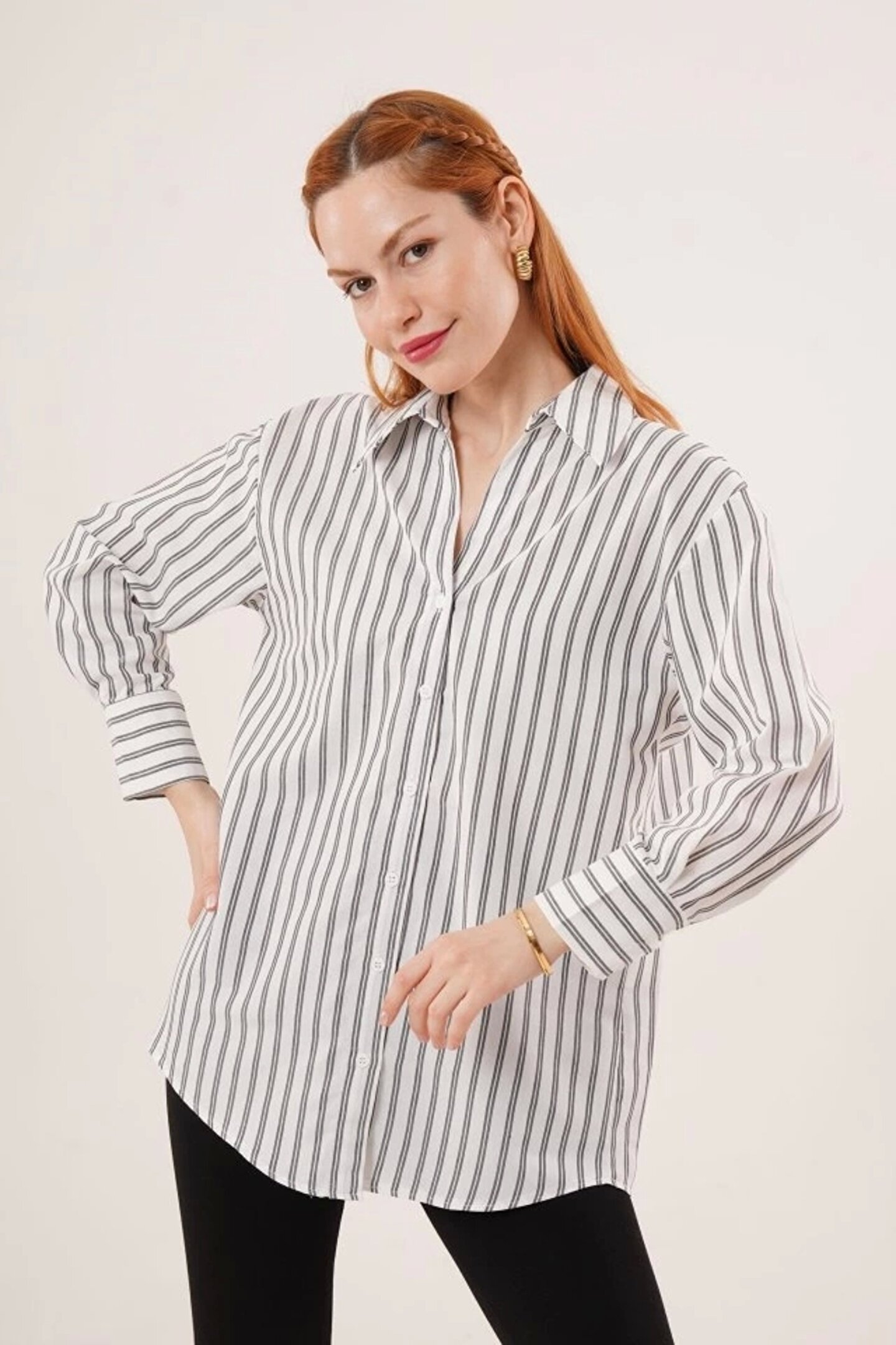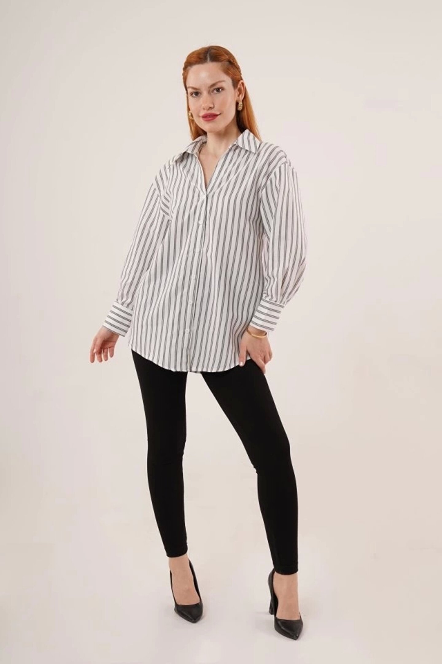 ASH GİYİM Çift Çizgi Geçişli Düğmeli Gri Gömlek