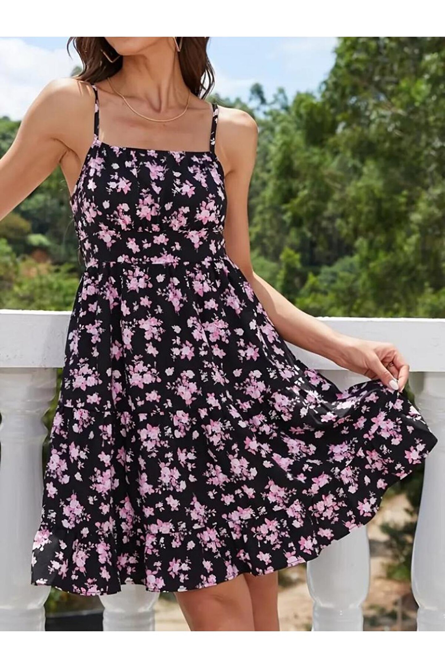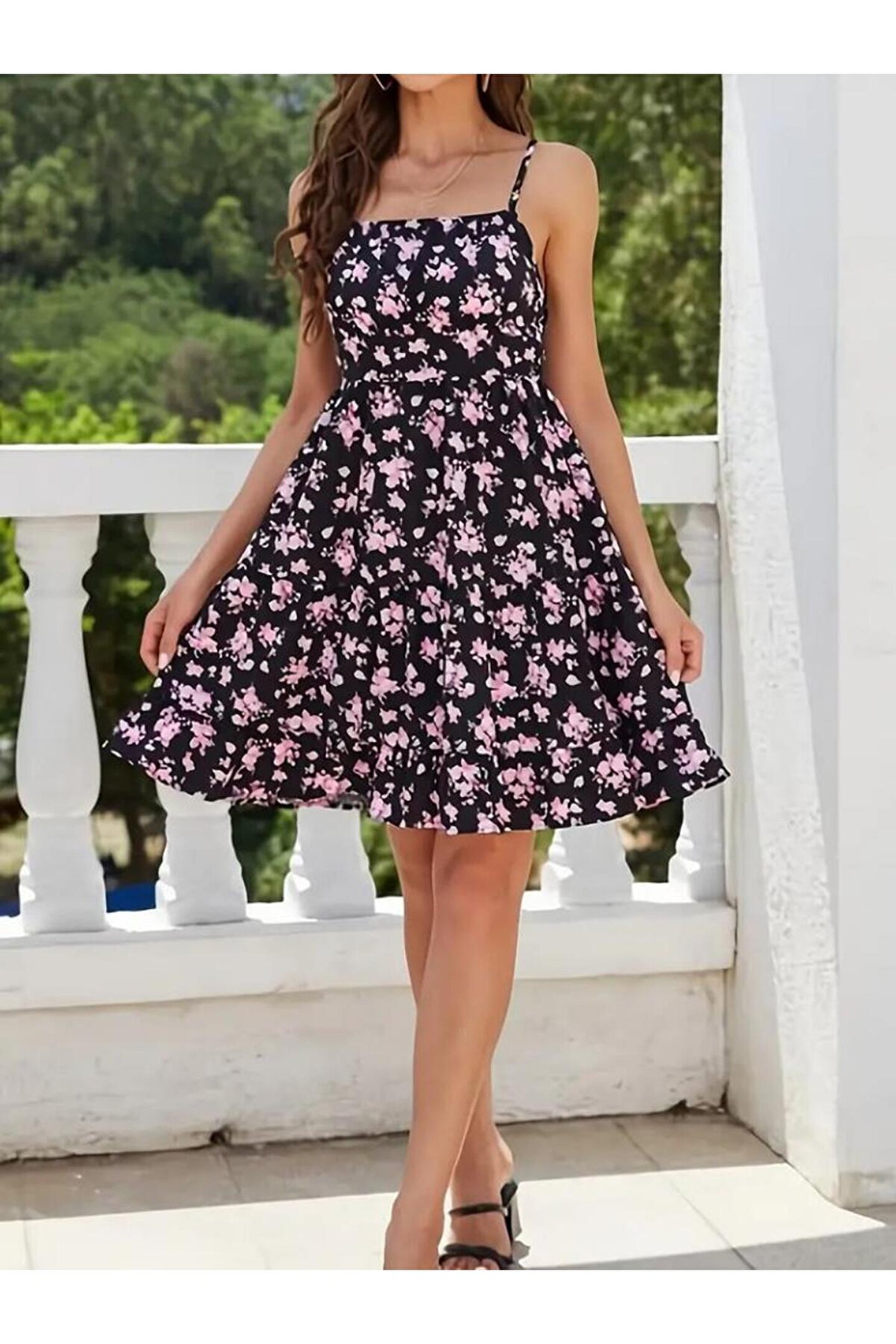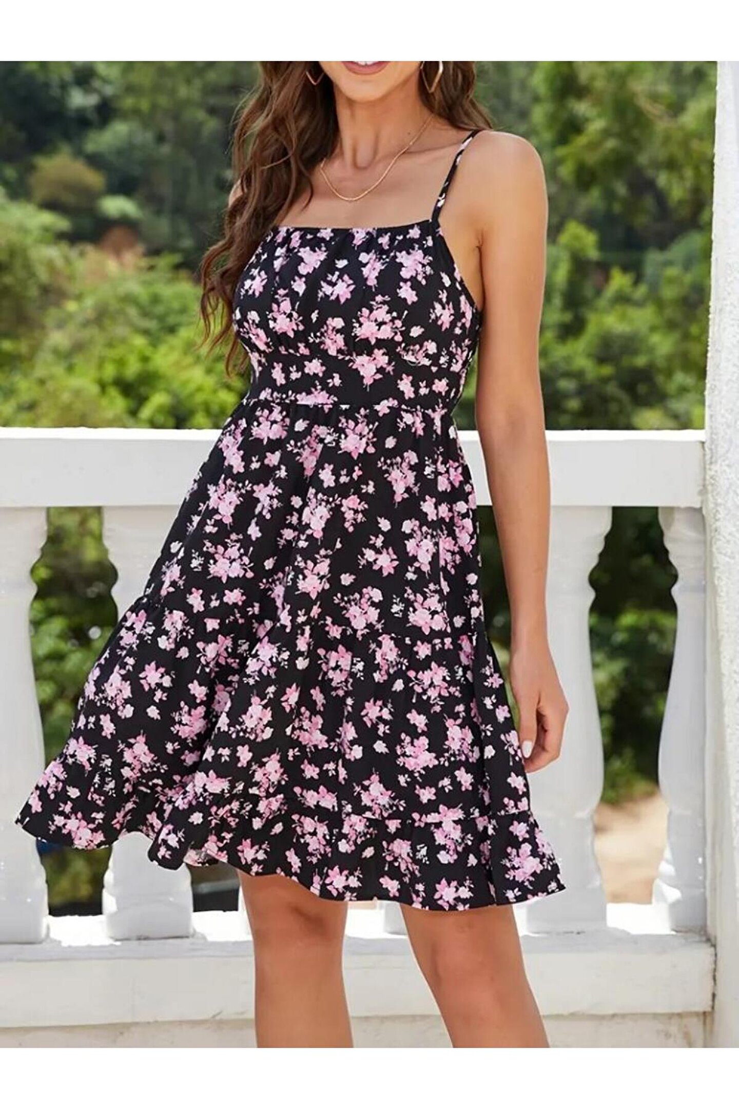 ASH GİYİM Kadın Askılı çiçek Desenli Süprem Mini Elbise