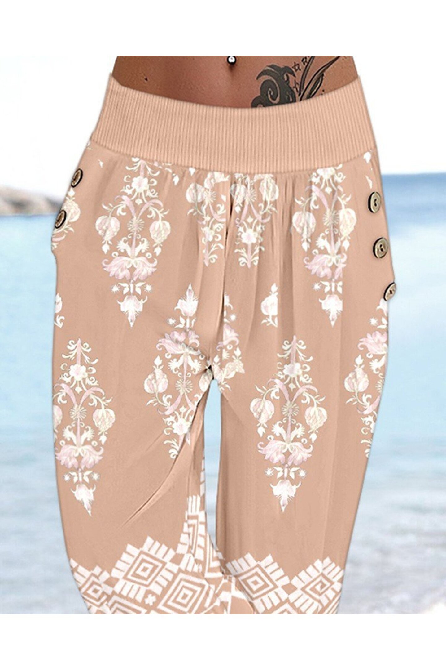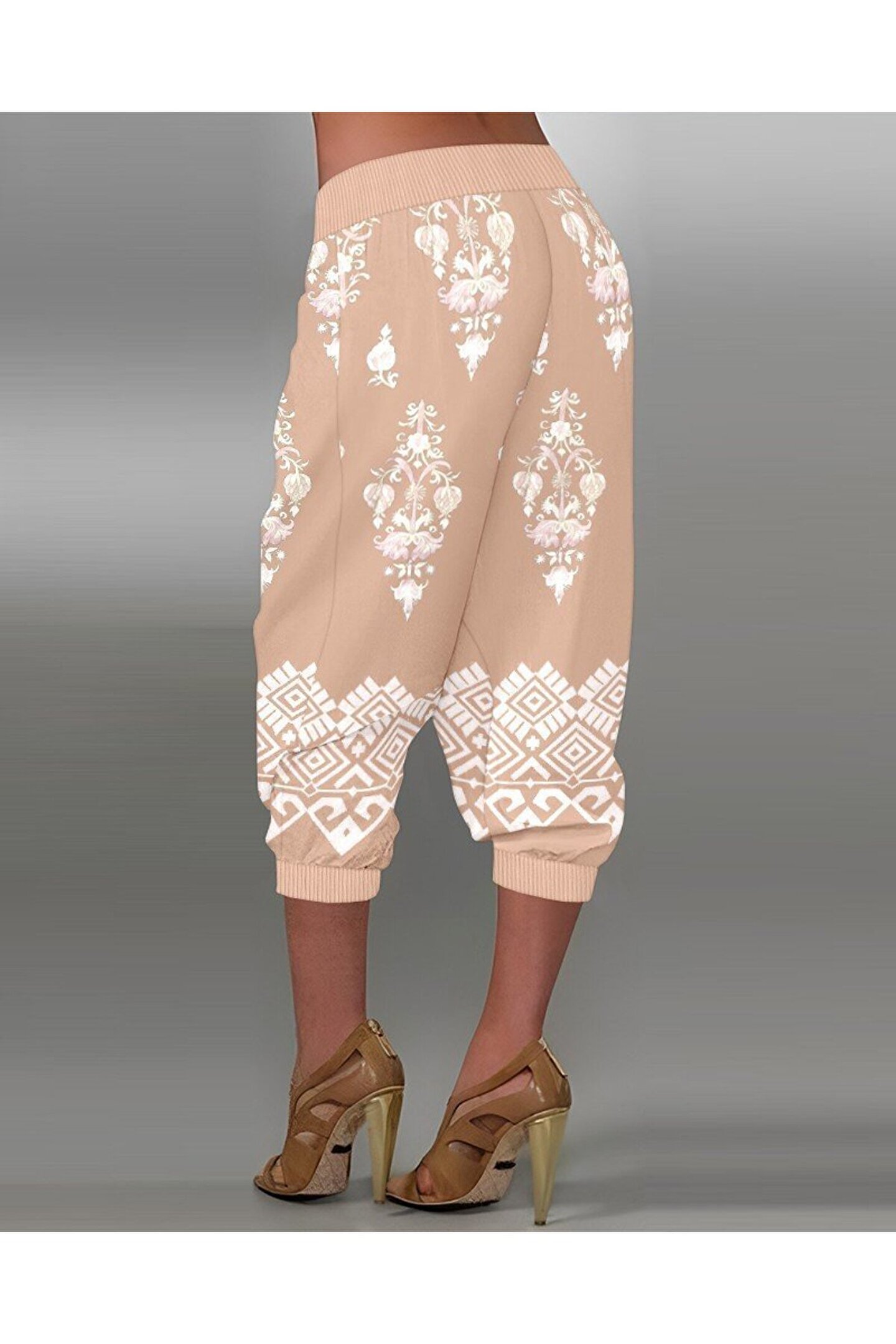 Kadın Beli Lastikli Etnik Desenli Kapri Süprem Pantolon