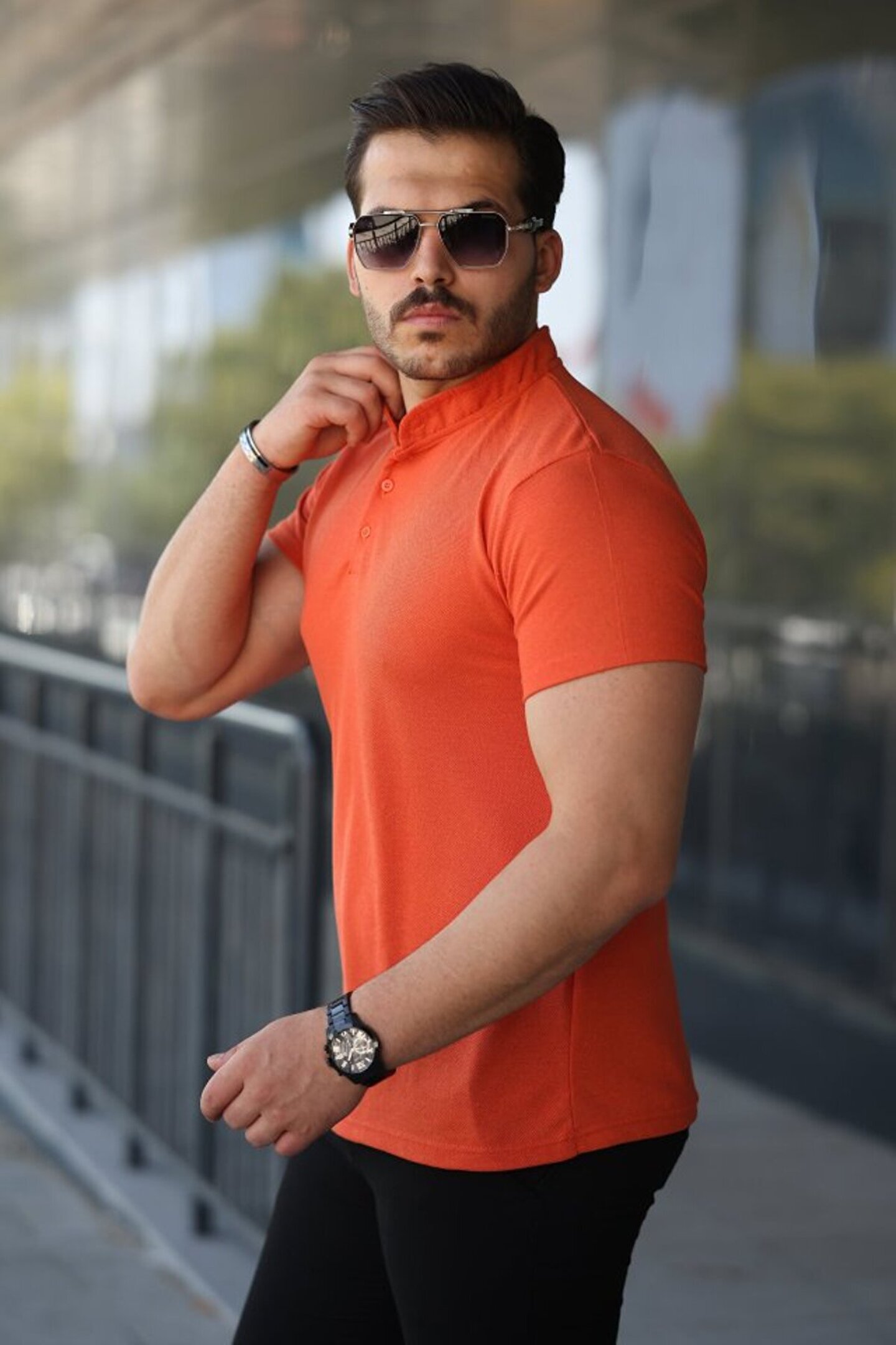 Erkek Hakim Yaka Dokuma Pamuklu Kumaş Kısa Kollu Tişört