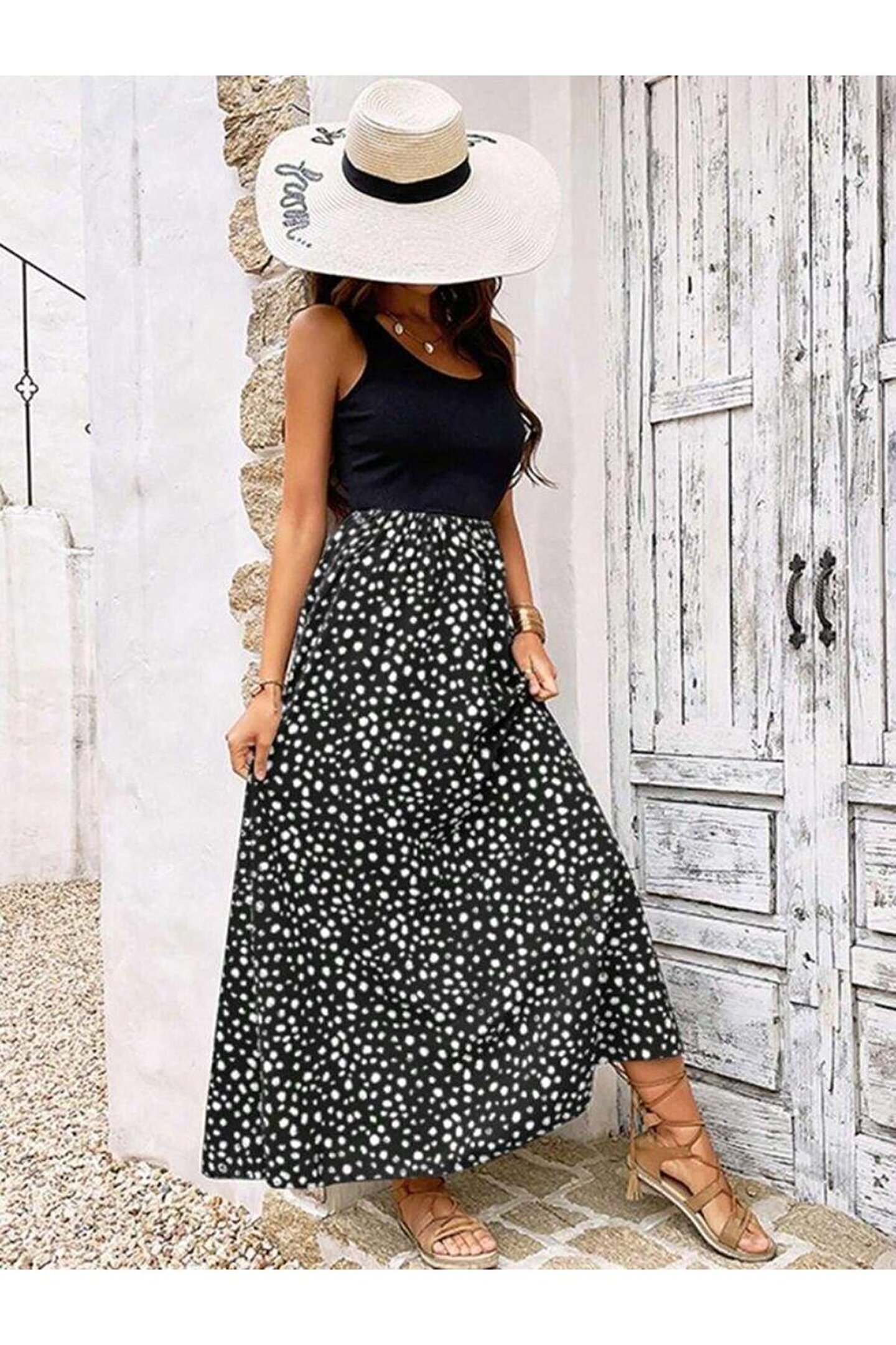 Kadın Askılı Yuvarlak Yaka üst Viskon Alt Desenli Bürümcük Elbise